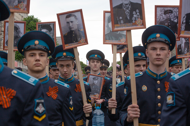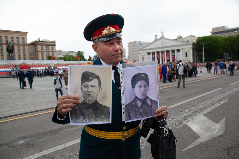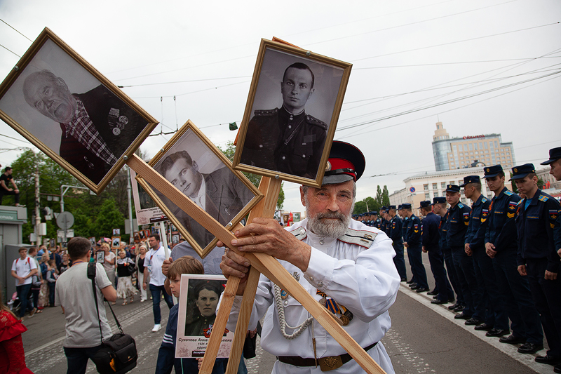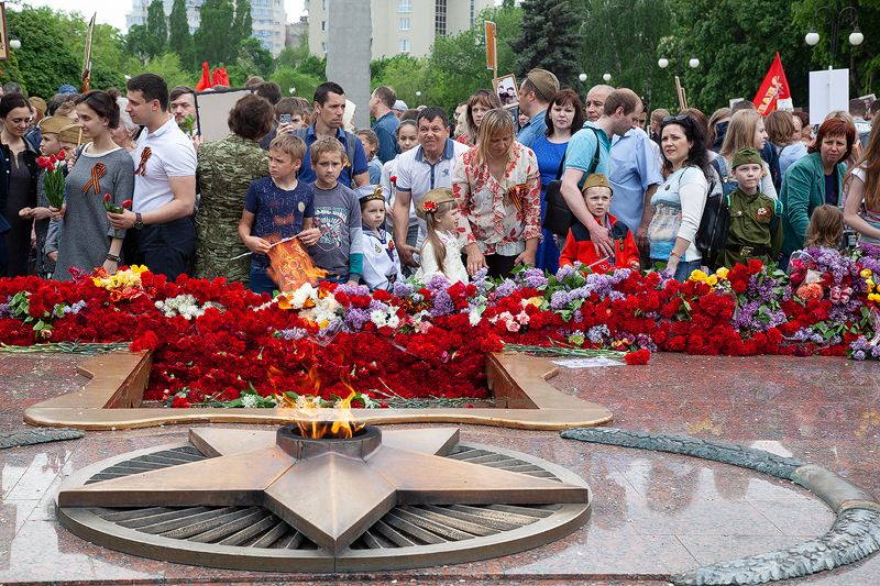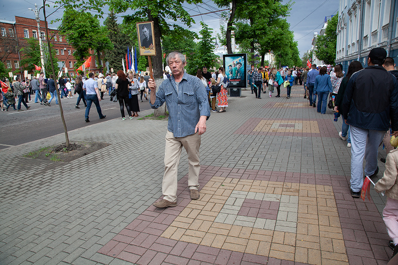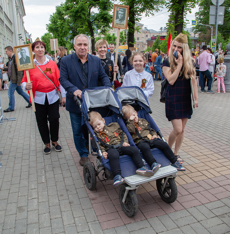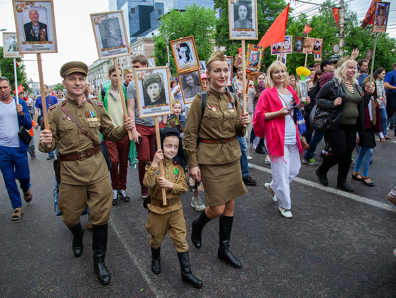 В руках каждого воронежца – портрет победителя. Вот Елена Шабалова с дядей Алексеем Грековым. Рассказывает, что на фронт призывались четверо братьев, но только одному из них посчастливилось дожить до Победы. А пятиклассник Ваня Курцев в рядах «Бессмертного полка» несет два портрета – это его прадед Дмитрий Матыцын и безымянный герой. Случайно отыскав у себя фотографию накануне праздника, поняли, красивый мужчина на портрете – родственник прадеда, также сражавшийся с фашистами. Ваня говорит, что прабабушка – единственная, кто сейчас может назвать его имя, но в силу возраста, подзабыла. Установить имя самостоятельно к 9 мая не успели, поэтому герой пока остается безымянным. Но этим вопросом обязательно займутся, в этой семье о значимости Великой Победы детям рассказывают с малых лет.