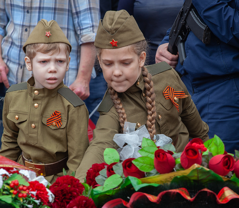 Когда мы заметили Настю, она направлялась к Вечному огню на площади Победы с целой «охапкой» портретов. В семье Овсянниковых воевали многие, на портретах сегодня – лишь четверо. В колонне Настя всегда несет фотокарточки прабабушки Марии Прасол, которая была связисткой и оказалась на фронте обманом, приписав себе год, и прапрадедушки Григория Попова. О его подвигах практически ничего неизвестно, как объясняет мама Насти, в семье было не принято спрашивать о войне – об этих ужасах ни прадеды, ни деды рассказывать не хотели.
