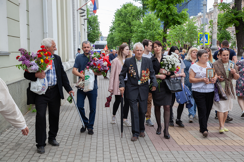 Воронежцы с портретами своих родственников и близких прошли от сквера «Надежда» по улице Плехановской и проспекту Революции до площади Победы. Традиционная акция «Бессмертный полк», несмотря на неблагоприятные метеопрогнозы, собрала в этом году рекордное количество участников – 57 тысяч человек. Иначе, говорят участники шествия, они не могли поступить: отцы и деды должны были встретиться с теми, с кем 74 года назад ковали Победу.
