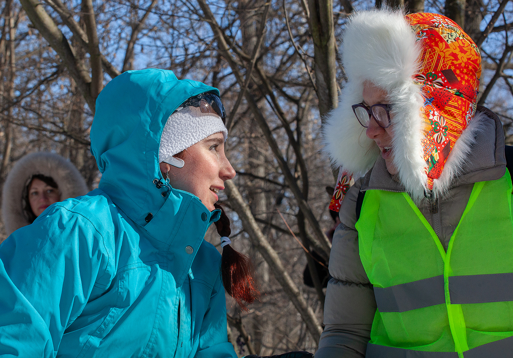 Сначала на дистанцию вышли юниоры с 12 лет до 21 года – расстояние от 2,2 км. Дети в возрастной категории от 7 до 12 лет просто бегали с собаками на поводке. Такой вид соревнований называется кани-кросс. Взрослые стартовали последними. Когда мы общались с участниками соревнований, то узнали, что некоторые из спортсменов на трассе оказались впервые, и совсем недавно даже не представляли, что поедут в обозе с собаками.