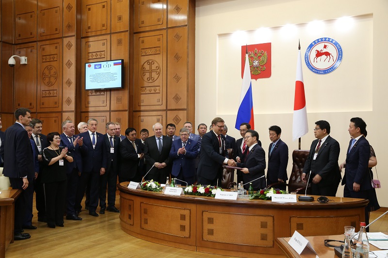 В числе участников совместного заседания были также: члены Совета Федерации, врио главы Якутии Айсен Николаев, спикеры региональных парламентов, представители бизнес-сообществ. В рамках встречи, проходившей в Якутске с 23 по 25 июня, японские бизнесмены обсудили с российскими коллегами возможности сотрудничества в сферах IT, строительства, пищевой промышленности, туризма и гостиничного бизнеса.