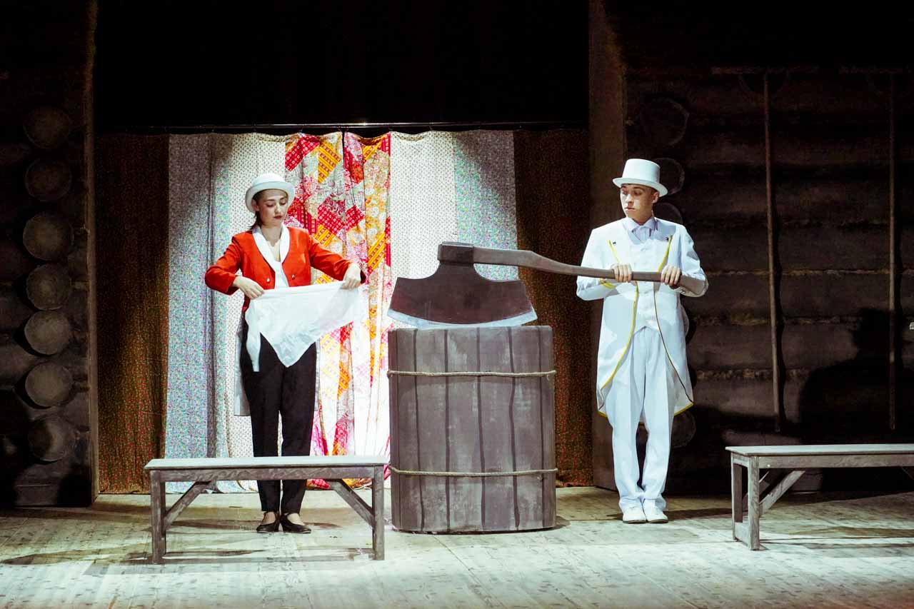 В основу постановки легли остроумные и самобытные истории Вячеслава Шишкова из цикла «Шутейные рассказы» – «Настюха», «Усекновение головы», «Сенцо», «Спектакль в селе Огрызово». Спектакль переносит зрителей в мир крестьянского быта, наполненный яркими характерами, народной мудростью и комическими ситуациями. Постановка смотрится легко, на одном дыхании. Кстати, она адаптирована для людей с ментальными нарушениями.