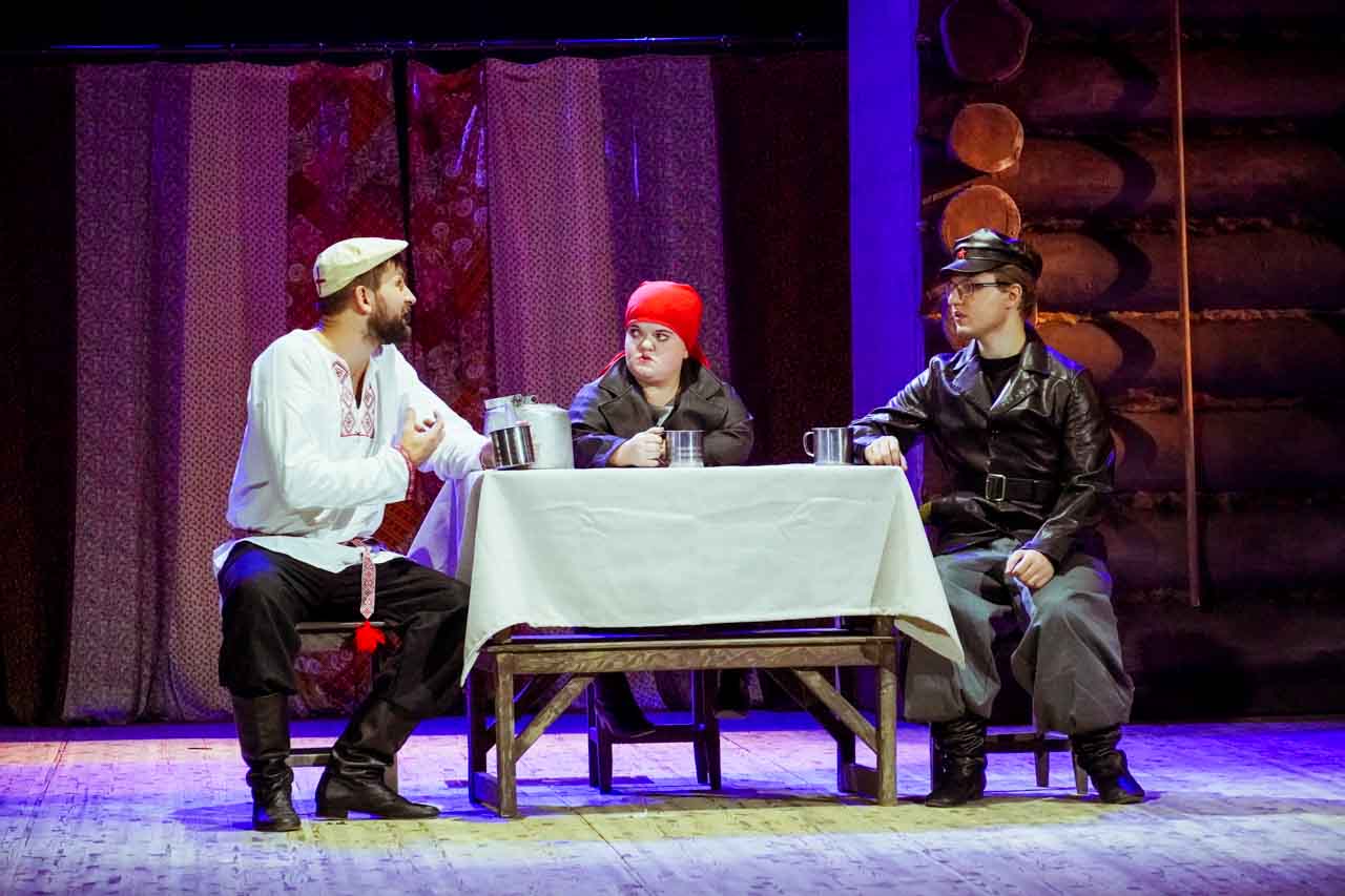 – Новый спектакль отличается большим количеством реквизита. Каждый из нас играл по три-четыре персонажа. Поэтому в течение всего спектакля нам нужно было переодеться несколько раз. Сделать это нужно за 30 секунд. В такие моменты мы приходим друг другу на помощь. Например, Лёша не видит – мы ему помогаем переодеться, - рассказала Юлия.