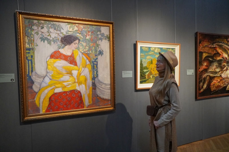 Музей Крамского представлен на выставке шестью работами, в том числе знаменитыми «Рыбами Каспия» художника Василия Яковлева. Картина представляла наш музей и на большой выставке в Манеже. Специально для участия в проекте она была отреставрирована. Выставлены полотна Крамского, Киселевой, а также портреты XVIII века.