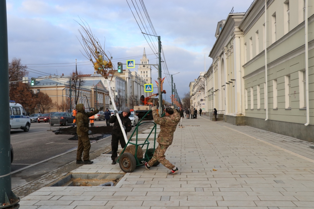 В начале реализации масштабного проекта работники филиала под контролем специалистов-экологов провели пересадку 27 старых лип на новое место в Коминтерновском районе города. Этот технически сложный и кропотливый процесс был выполнен без урона для растений. Вместо них появились новые деревья. 64 крупномерных саженца клена, устойчивого к агрессивной городской среде, уже высадили, а еще более 50 молодых деревьев украсят нечетную сторону проспекта весной следующего года. Высадка зеленых насаждений спроектирована с учетом размещения малых архитектурных форм и инженерных сетей. В местах, где посадка деревьев невозможна, предполагается контейнерное озеленение территории.