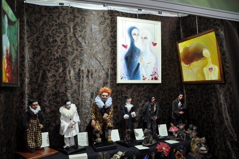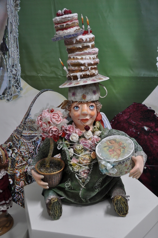 В работе выставки принимает участие известный коллекционер, художник и хозяйка московской «Кукольной Галереи Вахтановъ» Ирина Мызина.