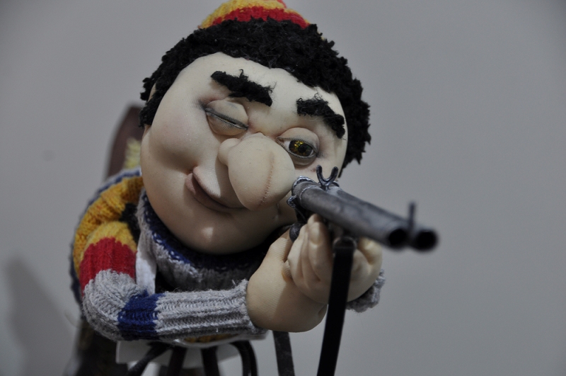 Основатель жанра войлочной скульптуры художник Ирина Андреева представляет на выставке композицию из войлока «Теплые истории». Все ее работы методом валяния выполнены в натуральную величину. Здесь – целые свалянные истории из детства взрослых посетителей выставки, жанровые истории.