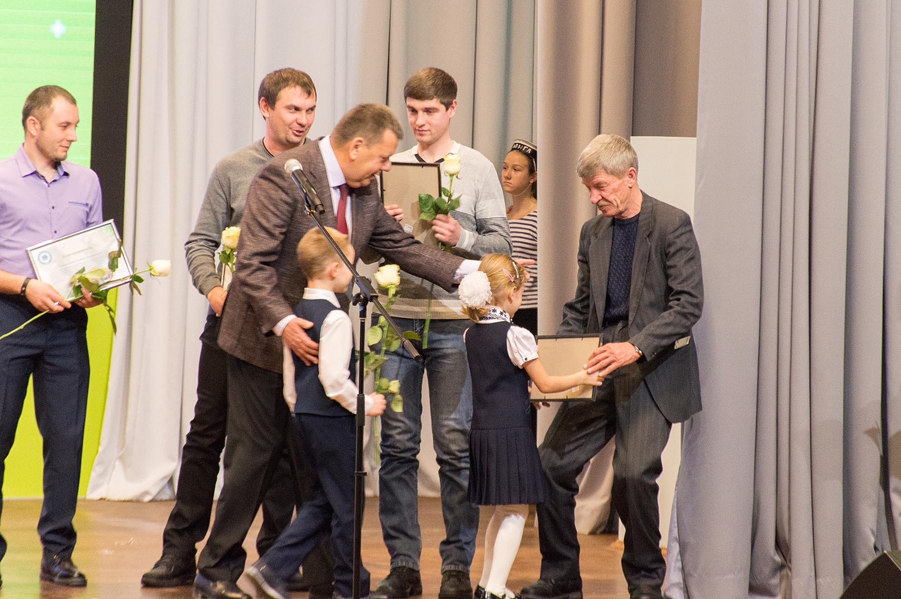 В ходе праздника благодарственными письмами были награждены участники строительства, работающие в ДСК: кровельщик Алексей Авдулов, производитель электромонтажных работ Родион Куцов, производитель строительно-монтажных работ Алексей Ветохин и мастер управления механизации Василий Кудрявцев.