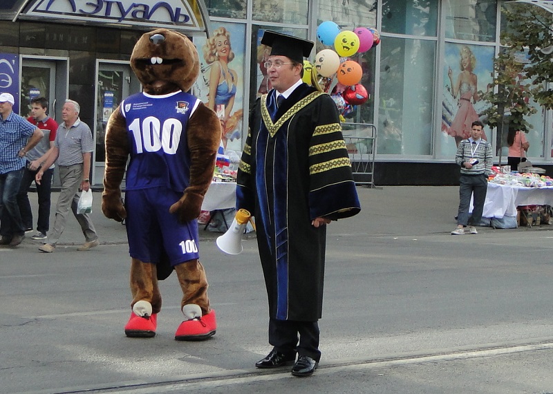 Необычным шествием начался день 15 сентября в Воронеже. Вместе с празднованием Дня города сегодня проходили основные мероприятия в честь 100-летия Воронежского университета (ВГУ), и самым зрелищным из них стал парад студентов и выпускников.