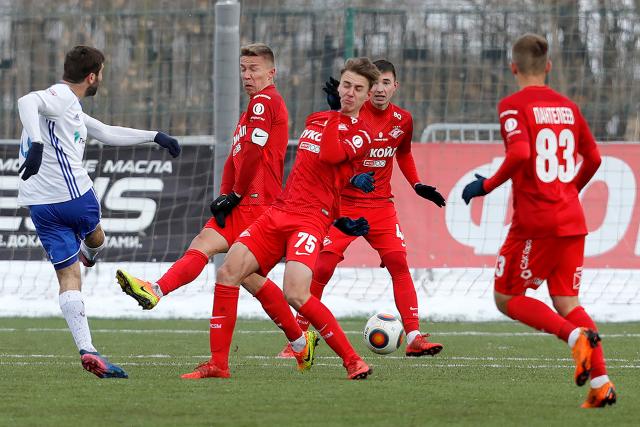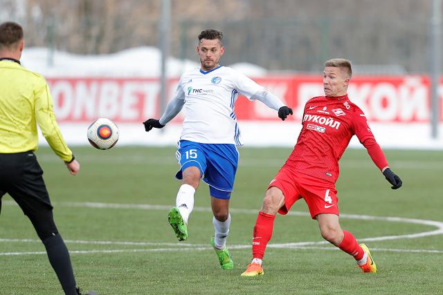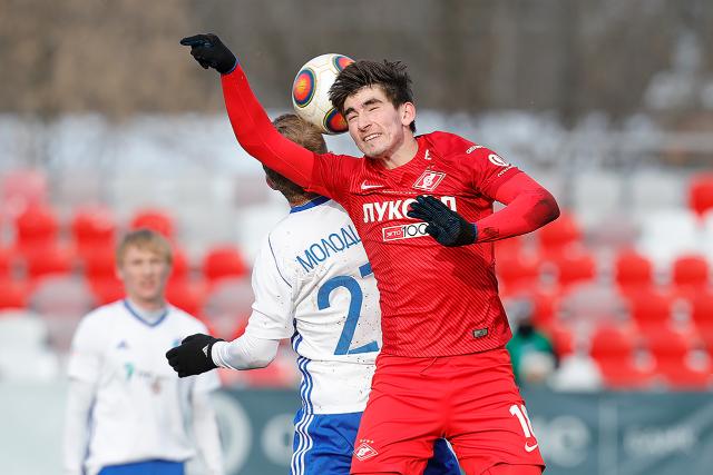 Постепенно спартаковцы выровняли игру, и на 18-й минуте, совершив перехват в центре поля, создали первый в матче опасный момент. Владислав Пантелеев отличным разрезающим пасом пытался вывести один на один Александра Руденко, однако Илья Трунин грамотно разобрался в данной ситуации и, своевременно выскочив из «рамки», первым оказался на мяче.