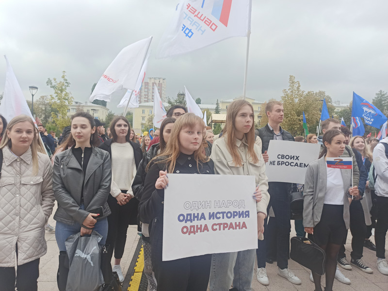 Общий тон всех выступлений сводился к призывам поддержать жителей ДНР, ЛНР и освобождённых украинских территорий, которые буквально в эти дни определяют свою судьбу и в подавляющем своём большинстве, судя по опросам, хотят стать частью Российской Федерации.