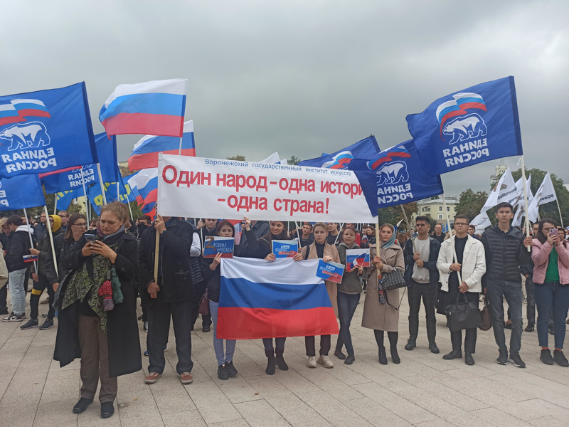 Сегодня, 23 сентября, в сердце Воронежа, на Советской площади, прошёл митинг-концерт. Назвали его «Своих не бросаем!» и посвятили поддержке проходящих сейчас референдумов о присоединении к Российской Федерации в Луганской и Донецкой республиках, а также в Херсонской и Запорожской областях.