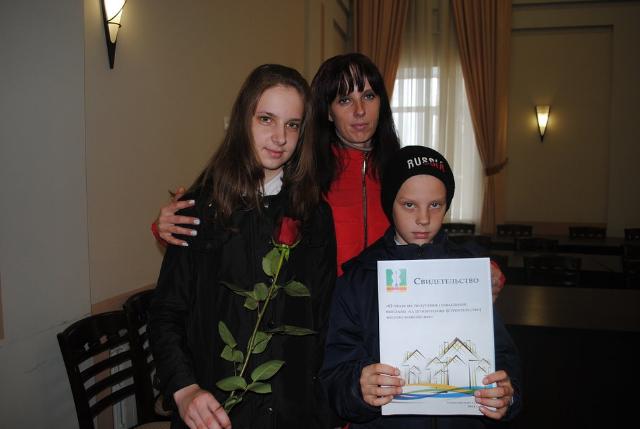 – С большим волнением собирались сегодня на вручение. Это очень важно для нас, поэтому я разрешила своим старшим деткам Тане и Жене прогулять школу. Младшенькие – Илья и Виктор – остались с бабушкой. Папа на работе. Это праздник со слезами на глазах, – говорит Наталья.