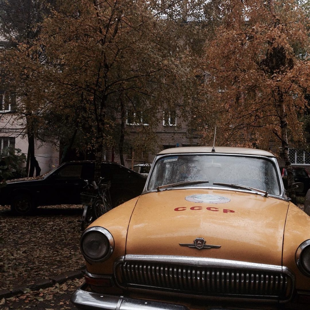 На капоте у автомобиля надпись – «СССР». И подпись автора: «Привет из прошлого». Аналогичный автомобиль ГАЗ-21 был подарен в свое время Юрию Гагарину.