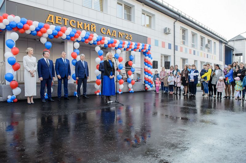 Татьяна Голикова, Александр Гусев и Марина Ракова приняли участие, в частности, в открытии детского сада общеразвивающего вида № 25 на ул. Артамонова, в новом жилом микрорайоне «Лазурный».