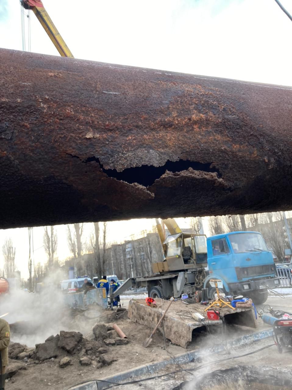 Для наглядности ПАО «Квадра» приводит фото участка трубы, демонтированной на Ленинском проспекте, 162. 67 жилых домов и 13 социальных объектов пока остаются без отопления.