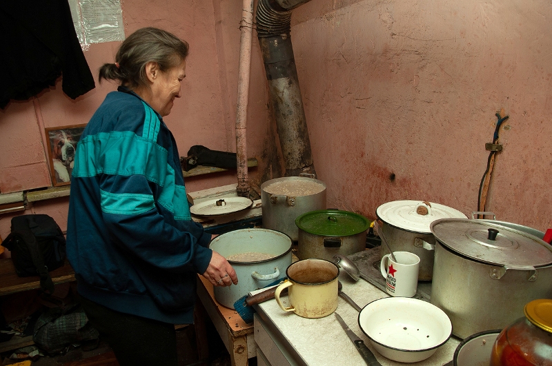 Малюсенький коридор – и сразу кухня. Под потолком натянута бельевая веревка: сушка в самом разгаре. За столом обедает дедушка, а женщина по имени Вера за ним ухаживает: подкладывает хлеб, подает ложки-вилки, а позже провожает до койко-места. И снова возвращается на свой пост в кухню. Посуду – в раковину, сама – к плите. Из дальней комнаты еле слышно шагает Дмитрий, откашливается, присаживается на табуретку, чтобы подкинуть дровишек в печку. На вопросы о том, как оказались в приюте, оба отвечают коротко, без подробностей.