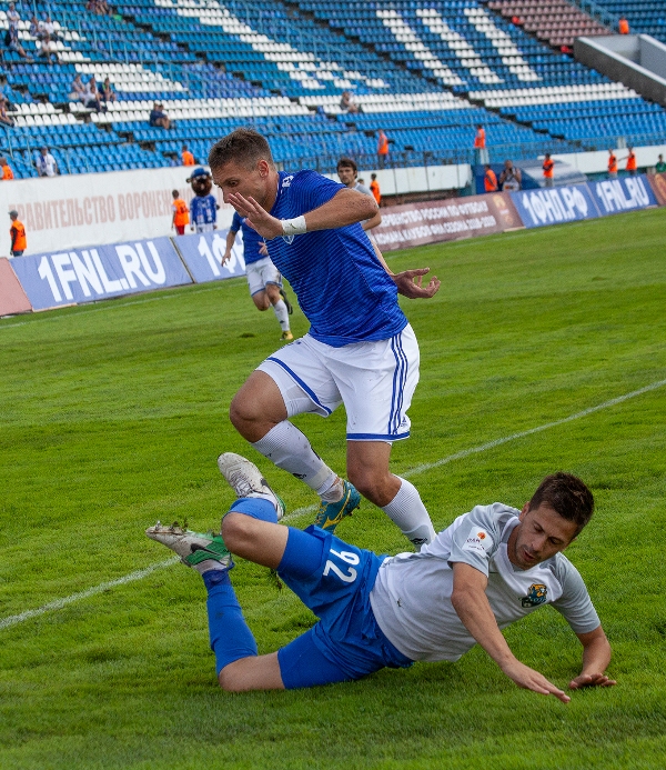 Поведя в счете, южане не стали снижать обороты. Правда, на 10-й минуте острый выпад удался и воронежцам, но Игорь Лебеденко, замыкая прострел Ивана Беликова, угодил в защитника. Гости же в середине тайма создали еще несколько моментов подряд. Соловьев и наш земляк, уроженец Павловска Валерий Почивалин, дважды находили подачами с флангов Саная, ударам которого чуть не хватало точности. На исходе получаса игры блеснул Терновский, сумевший справиться с эффектным выстрелом Померко с ходу под перекладину.