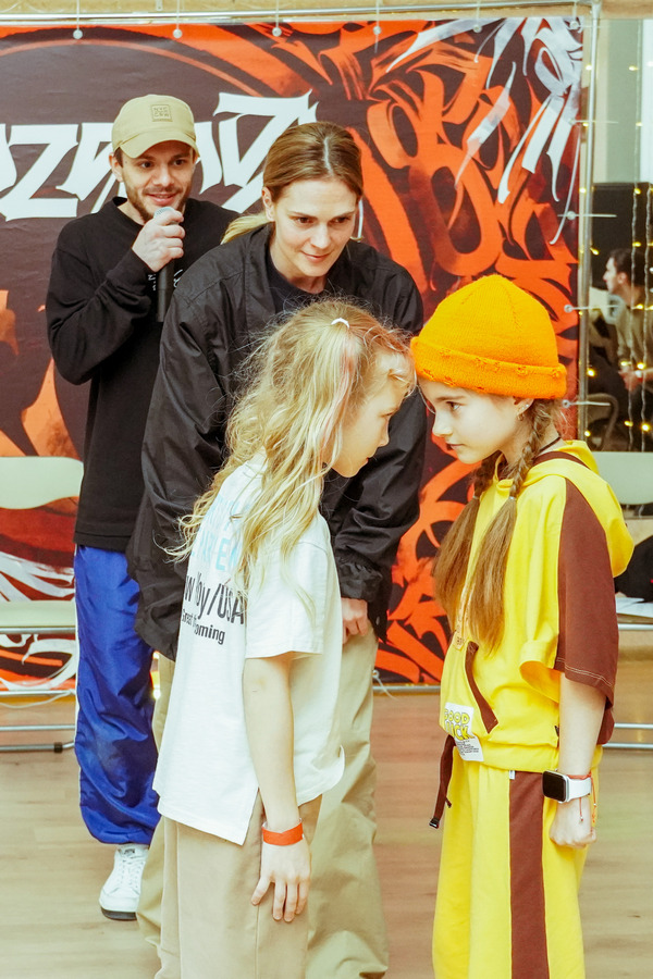 Участники разного возраста, танцующие в разных направлениях, практически «взрывали» танцпол, но, пожалуй, один из самых запомнившихся поединков состоялся между 10-летними девчонками, начинающими танцорами. Вероника Власова занимается у тренера в группе 13+, и, кажется, она, как и ее оппонентка Каролина, предпочитает в батлах весьма жесткий и яркий танцевальный язык. Из-за этого Вероника стала представляться на соревнованиях Искрой.