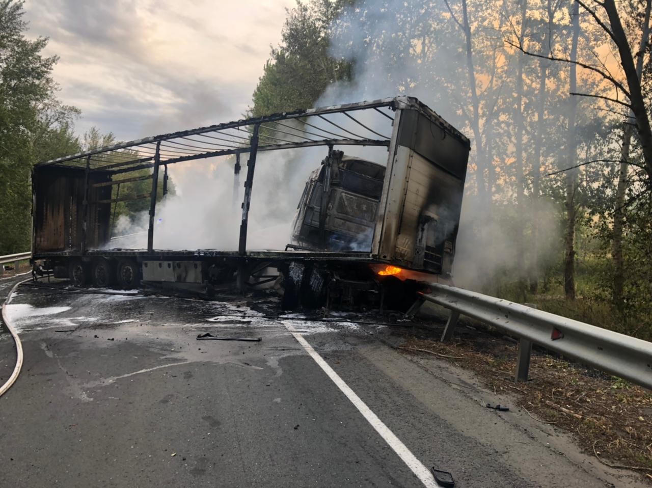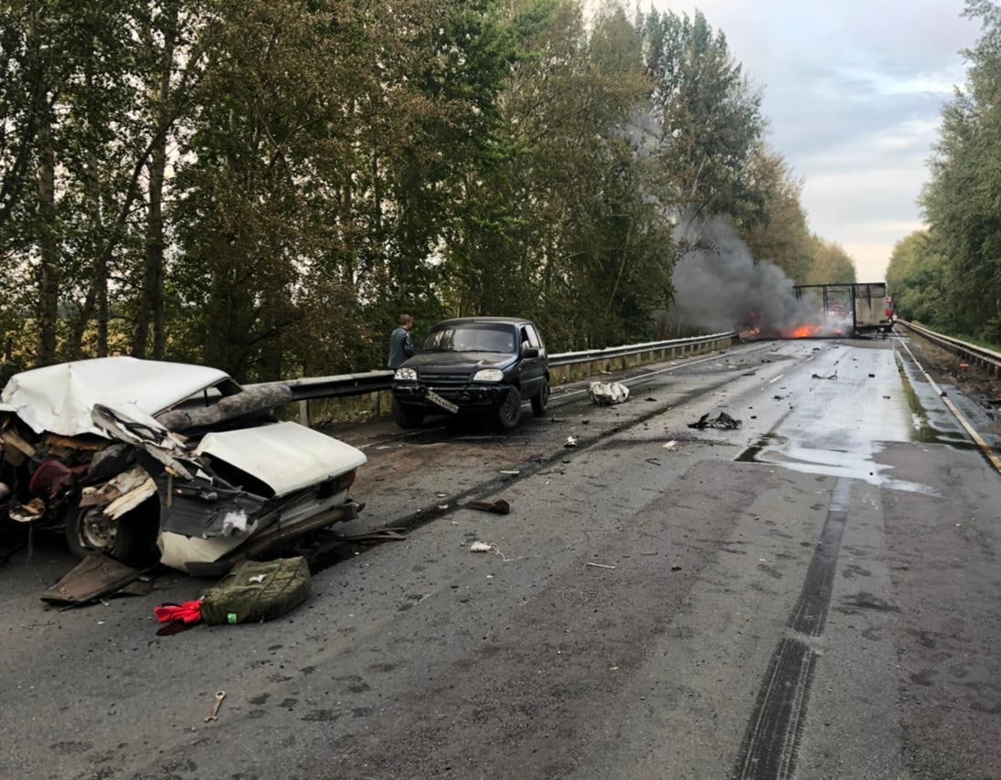 Фура по инерции столкнулась с «Шевроле Нива», после чего загорелась.