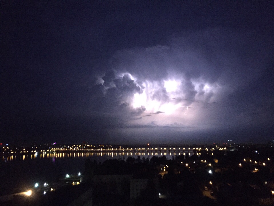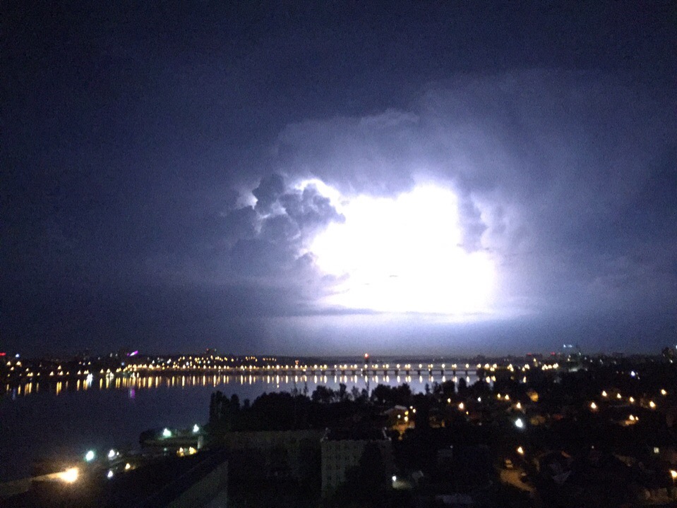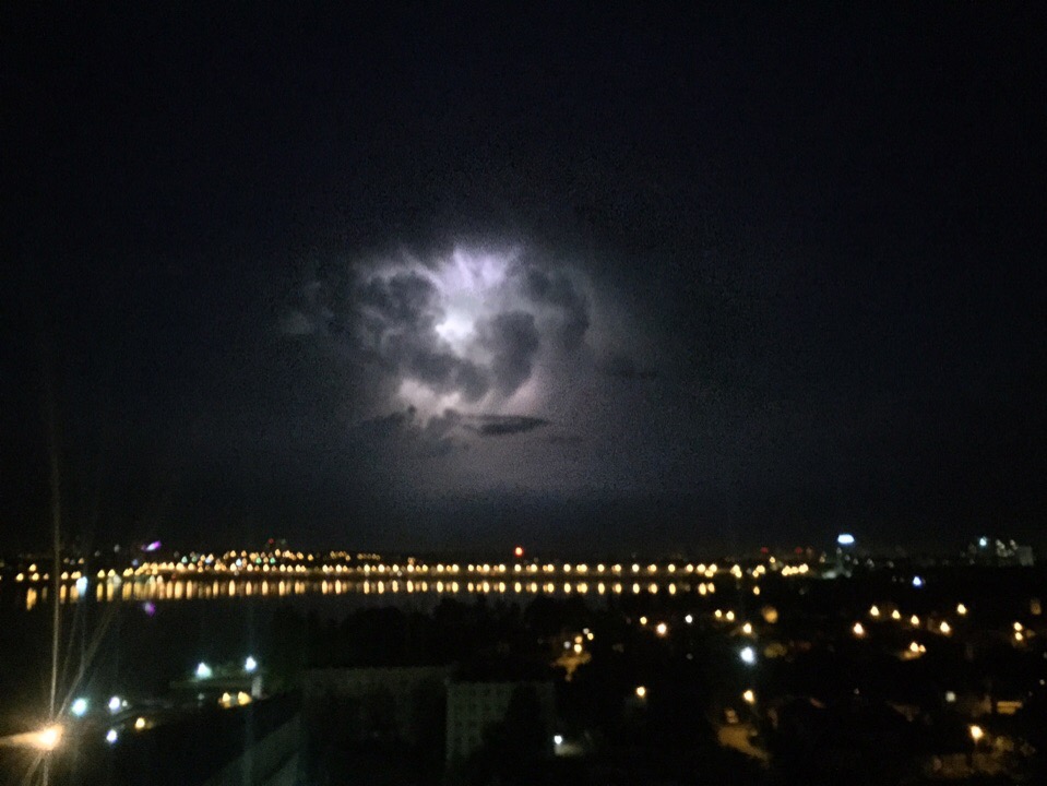 Удивительные фото ночного неба над городом опубликовал в «Типичном Воронеже» анонимный автор. Яркий свет в клубящихся тучах напоминает сцены из фантастических фильмов.