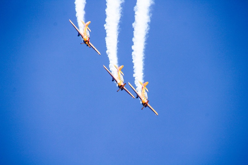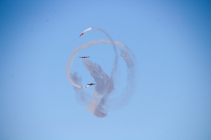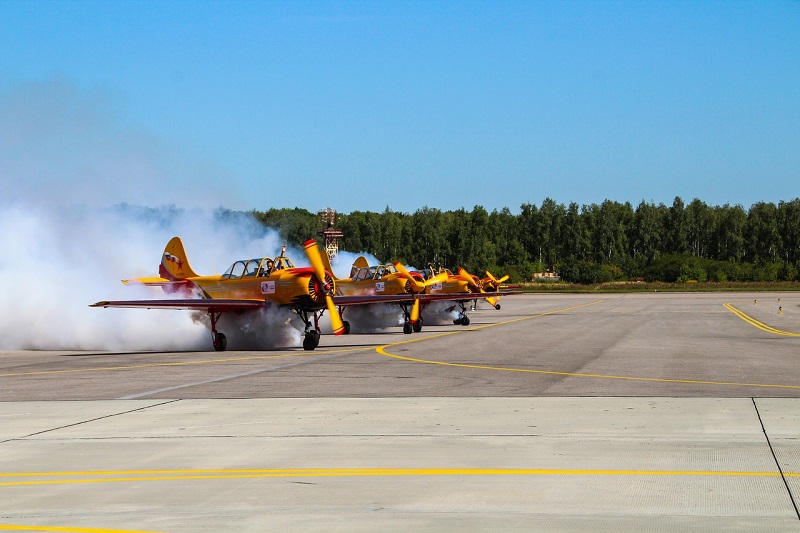В небо поднимались пилотажная группа «Первый полет» на поршневых самолетах, пилотажная группа «Колибри» на спортивных низкопланах итальянского производства. Но вот «Русских витязей», заявленных в программе, зрители не дождались – вместо них фигуры высшего пилотажа продемонстрировали летчики на истребителях СУ-30СМ и СУ-24.