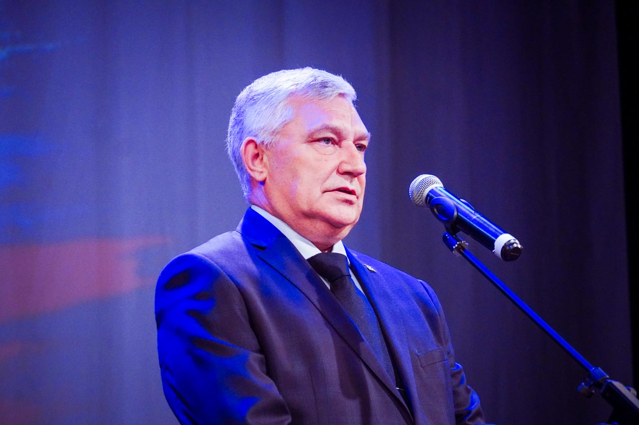 Приветственное слово от главы города Воронежа со сцены передал ветеранам заместитель руководителя управления по работе с административными органами и структурами гражданского общества Андрей Чечель.
