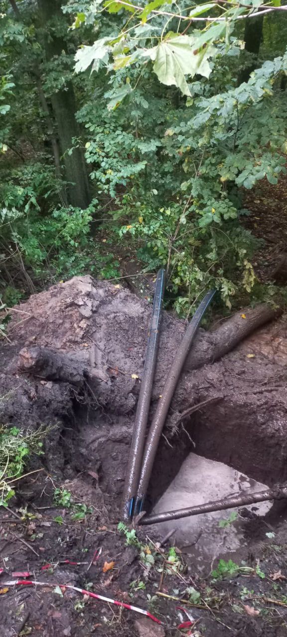 Здесь они своими глазами убедились в том, что имеет место нарушение охранного режима: без согласования на территории парка идет работа по прокладке кабеля. Для чего был проколот грунт и прорыт канал, а также повреждены зеленые насаждения, расположенные в границах памятника природы.