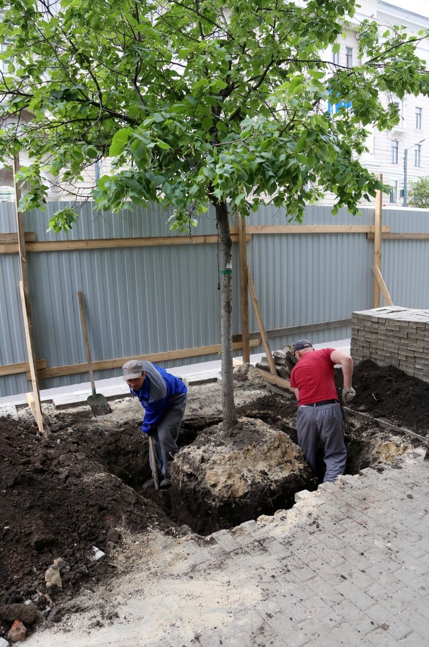 На нечётной стороне проспекта Революции разбирают бортовой камень и плитку, чтобы начать работы по другим "переселенцам". А на Московском проспекте заранее подготовили ямы для высадки и цистерну для полива. В ближайшие несколько суток специалисты надеются пересадить максимум деревьев из запланированных к пересадке, чтобы не упускать ни одного прохладного дня.