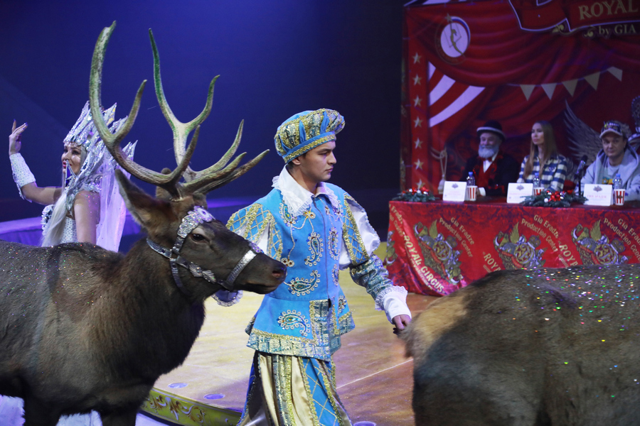 Во время новогоднего шоу зрители побывают на настоящем Королевском балу и увидят настоящую «Русскую зиму». В этом сказочном номере будут задействованы красивейшие северные олени, маралы, десяток лис разных окрасов и русские гончие борзые. Чуть позже зритель перенесется в Испанию, где бесстрашный тореадор покорит горделивых яков, а у фонтана в «Райском саду» можно будет увидеть уникальных розовых пеликанов и разноцветных попугаев Ара.