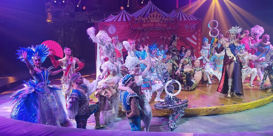 – «Коронация» – это большой красивый номер с воздушными гимнастами, которые в уникальном аппарате, представляющем собой большую золоченую корону, будут в облачении принцев выполнять в воздухе сложнейшие трюки. Одновременно в номере будет задействовано 7 человек. Номер «Волна», где жонглер работает на очень необычном аппарате, тоже очень необычен. Я работаю в цирке 32 года, и подобного изобретения еще никогда не видел. Номер также был создан на базе эстрадно-циркового училища и доработан нашими режиссерами- постановщиками Евгением Шевцовым и Ольгой Полтарак – они сделали его в зеркальном стиле, – рассказал продюсер «Королевского цирка» Гия Эрадзе.