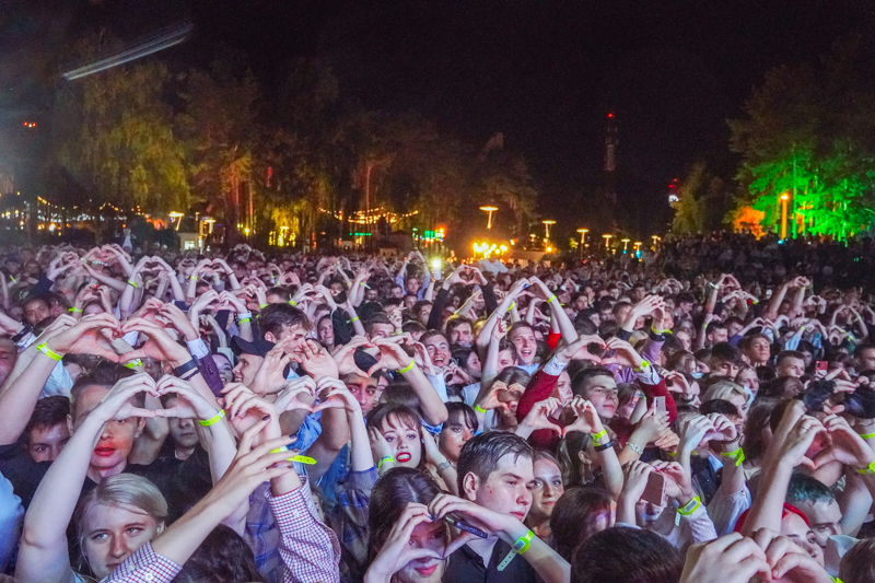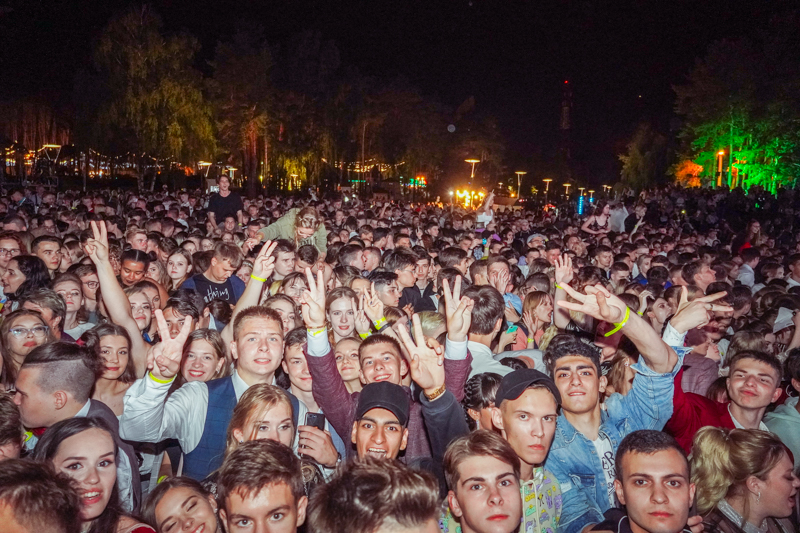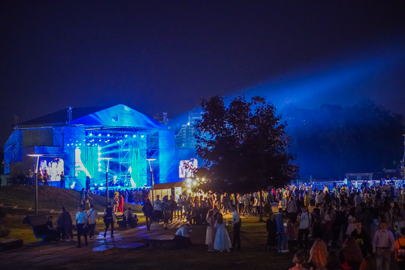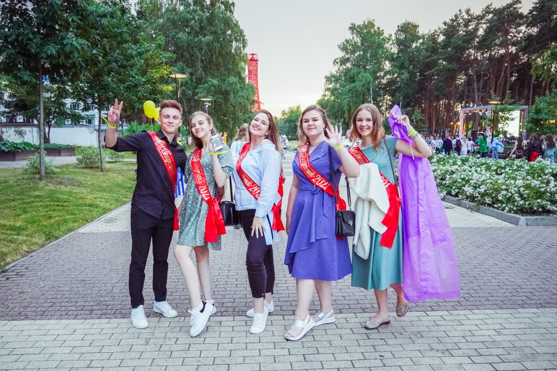 В самом парке работали тематические площадки на разные вкусы — от музыкальных до фотозон. В течение выпускного парк несколько раз накрывал дождь, но был он вполне теплым и, кажется, никому настроения не испортил. Поскольку и в 2019 году выпускной частично прошел под дождем, его уже можно считать традицией и вписывать в сценарий следующего праздника на правах полноправного участника.