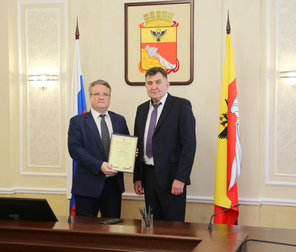 Глава Воронежа Вадим Кстенин за многолетний добросовестный труд наградил Леонида Беляева Почетной грамотой администрации.