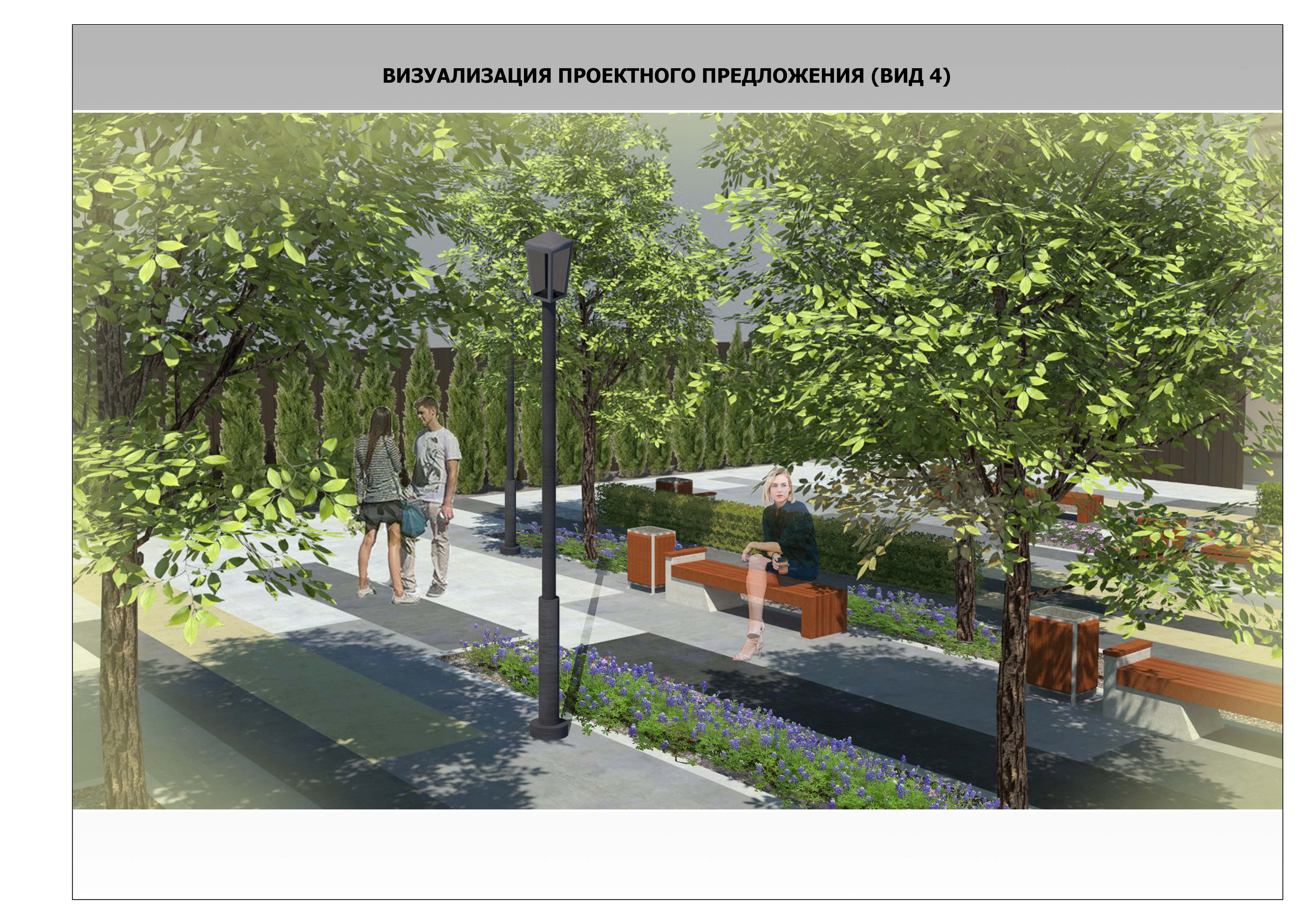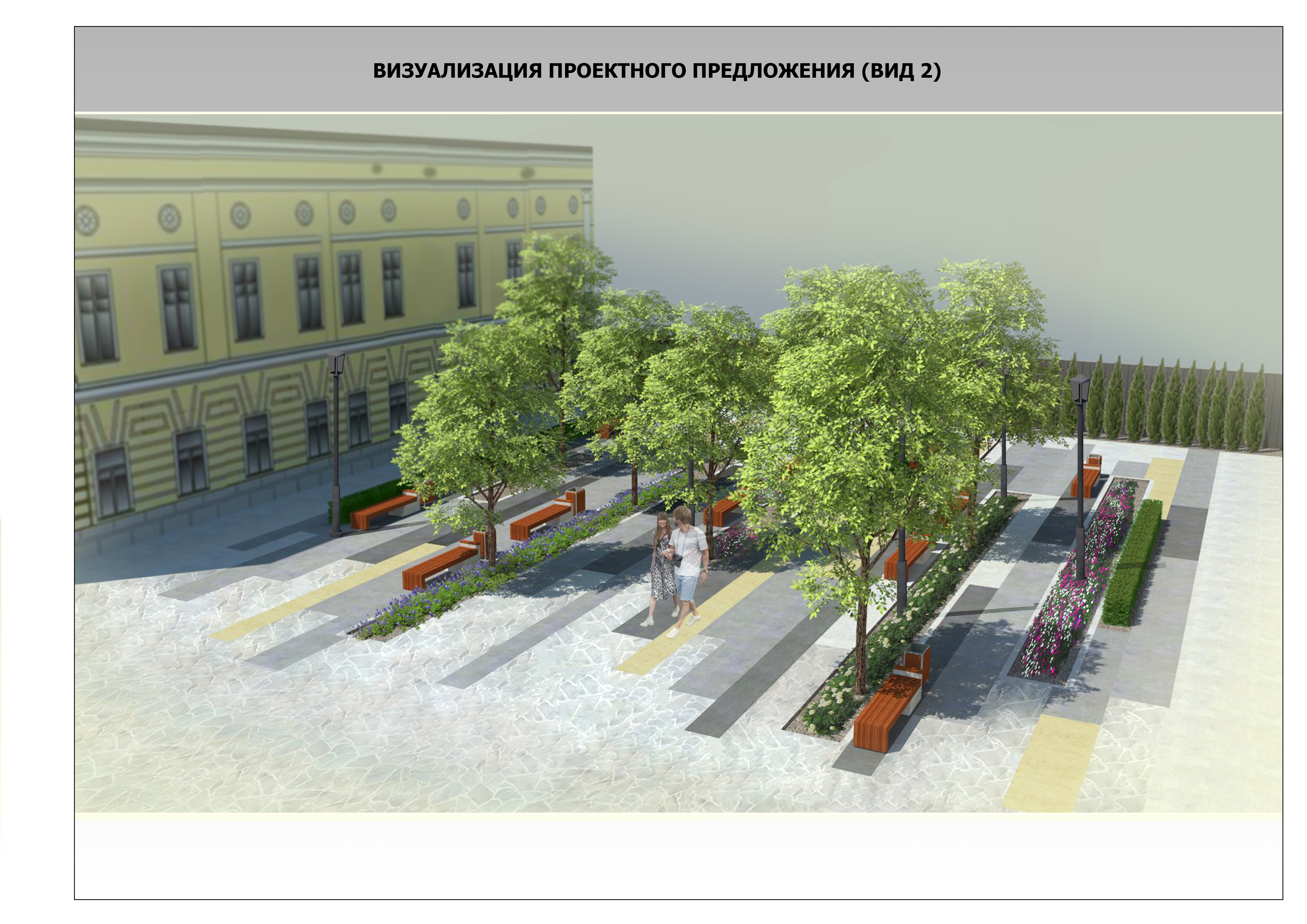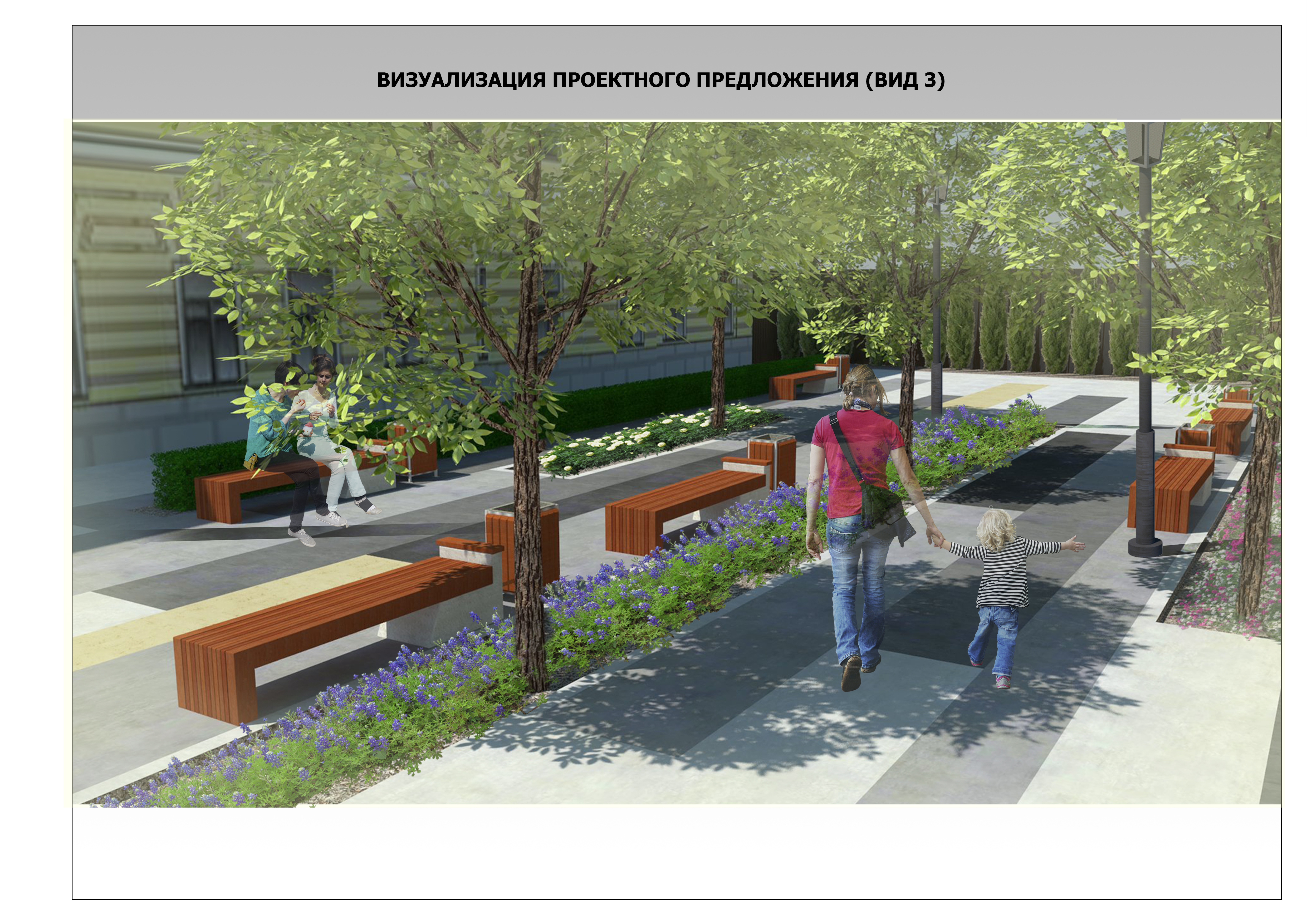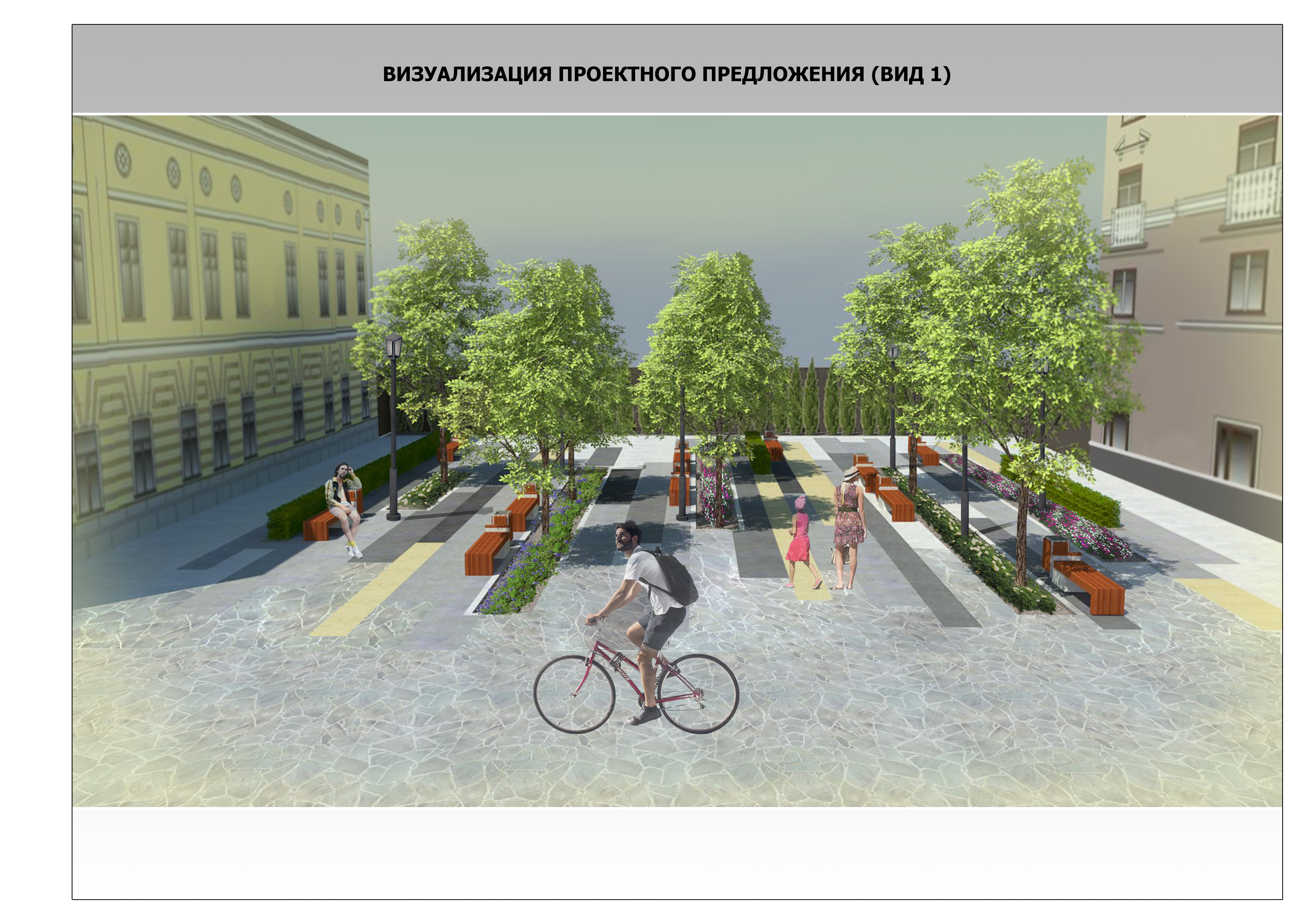 В настоящее время в управе Центрального района разработана концепция благоустройства данной территории, которая предусматривает устройство плиточного покрытия, установку скамеек, уличных светильников, формирование зеленых зон, а именно: посадку рябин и организацию цветников с высадкой многолетних почвопокровных растений. Кроме того, для удобства жителей прорабатывается техническая возможность оборудования зоны отдыха точками доступа Wi-Fi.