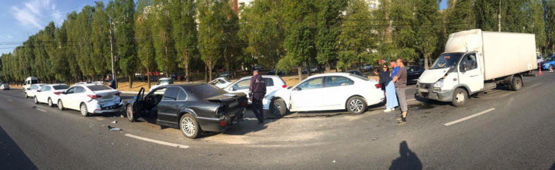 Утром в пятницу, 13 сентября, на Московском проспекте в Воронеже произошло массовое ДТП с участием шести авто.