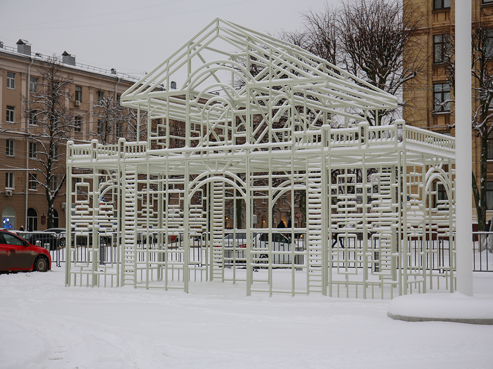 Ранее сообщалось о начале сборки 21-метрового новогоднего дерева на площади Ленина. В состав елки вошли прочное металлическое основание, а также расходящиеся на концах в «еловые лапы» ветки.