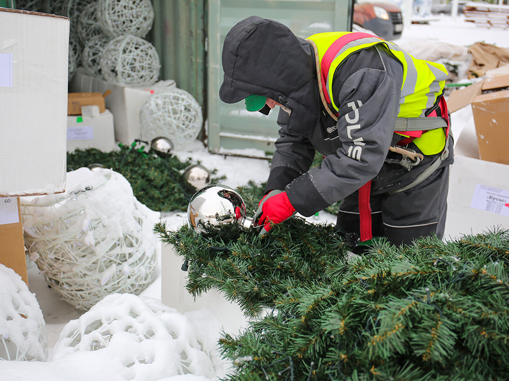 Как сообщили в пресс-службе горадминистрации, его вместо традиционной звезды разместили на макушке новогодней елки.