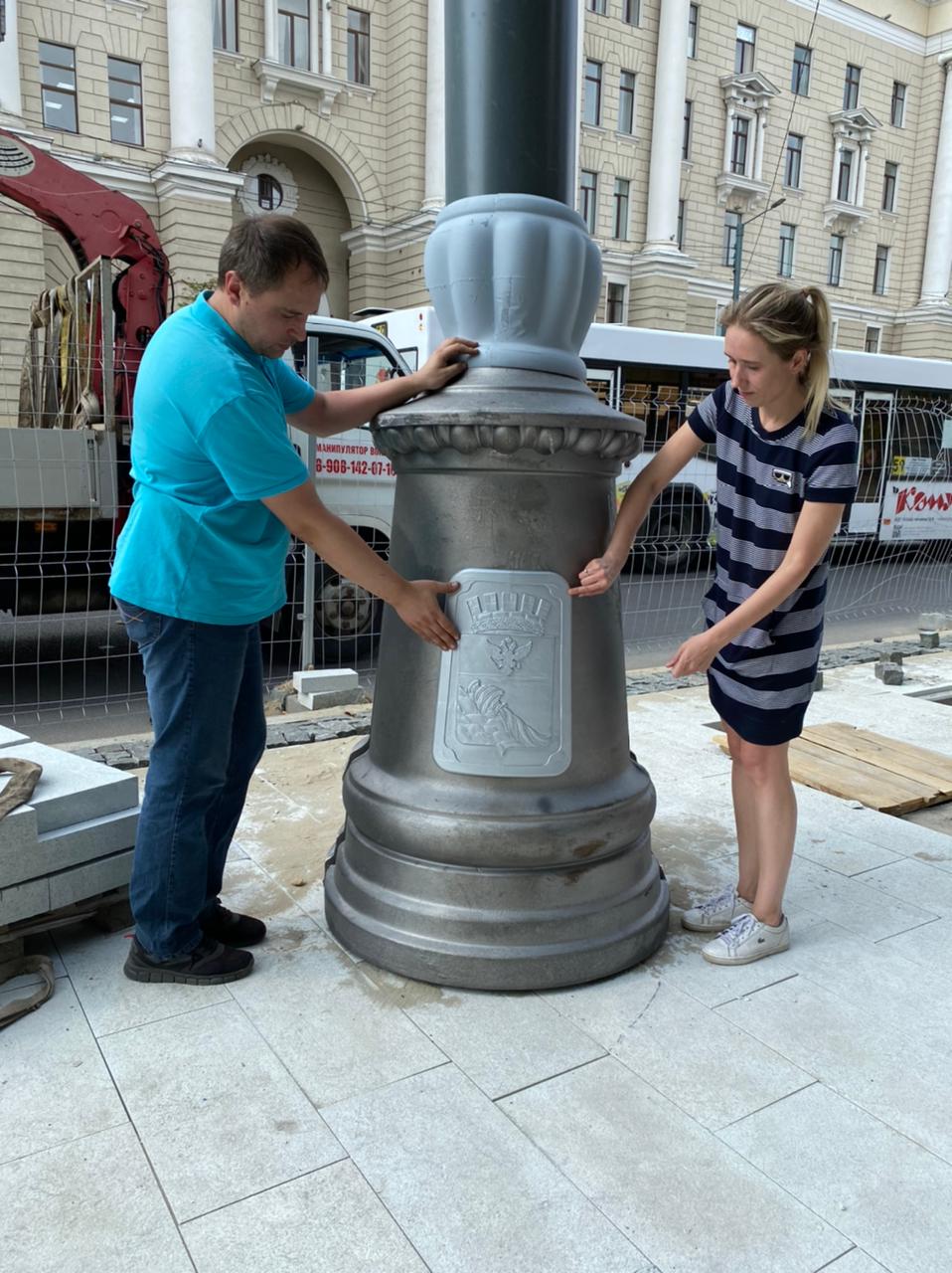 На площадку благоустройства проспекта Революции приехал первый опытный образец обнарядки опор освещения и контактной сети, воссозданный специалистами по тем элементам, которые были сняты со старых, уже почти аварийных столбов. Об этом 20 августа в своем телеграм-канале сообщил глава Воронежа Вадим Кстенин.