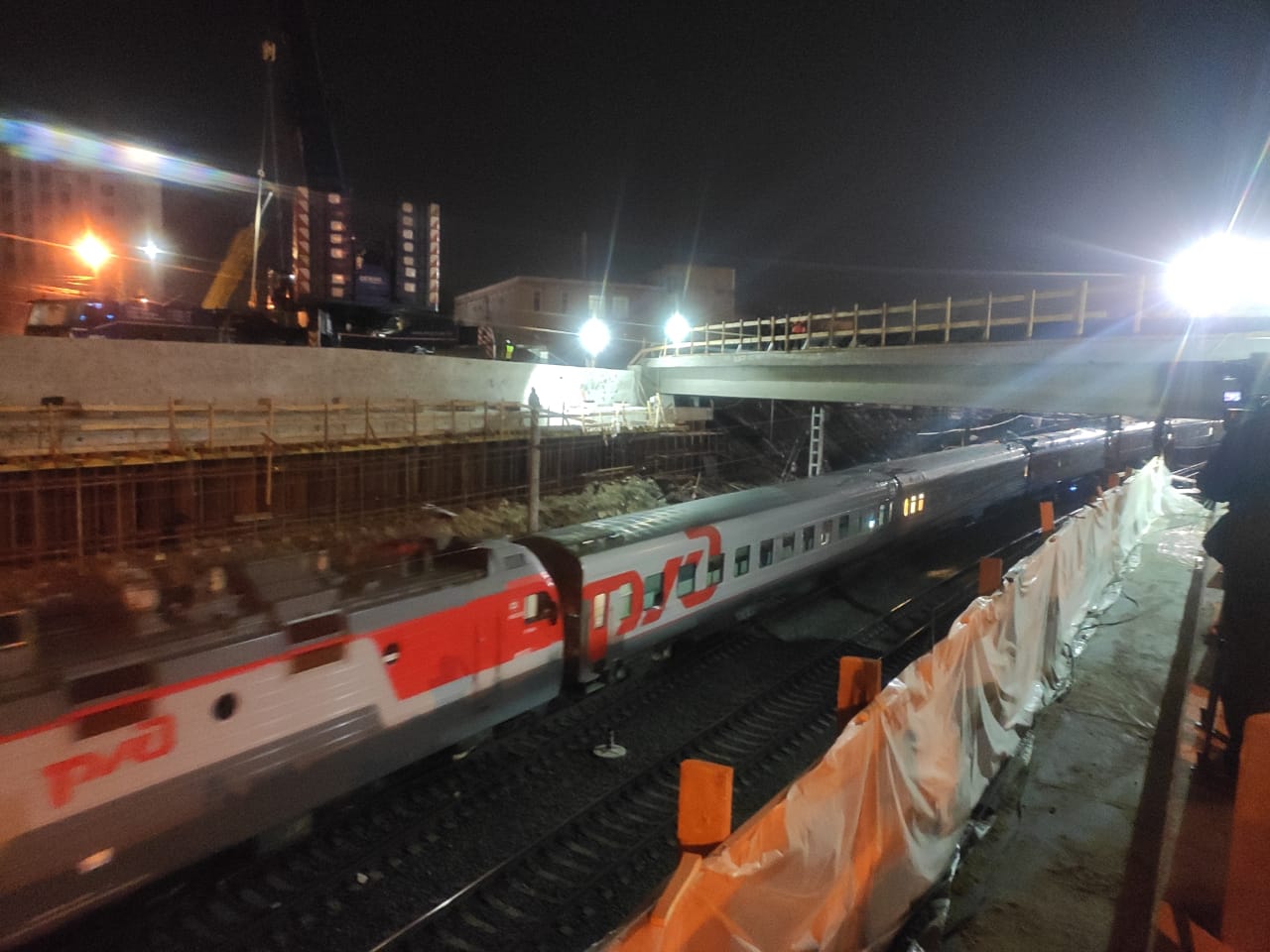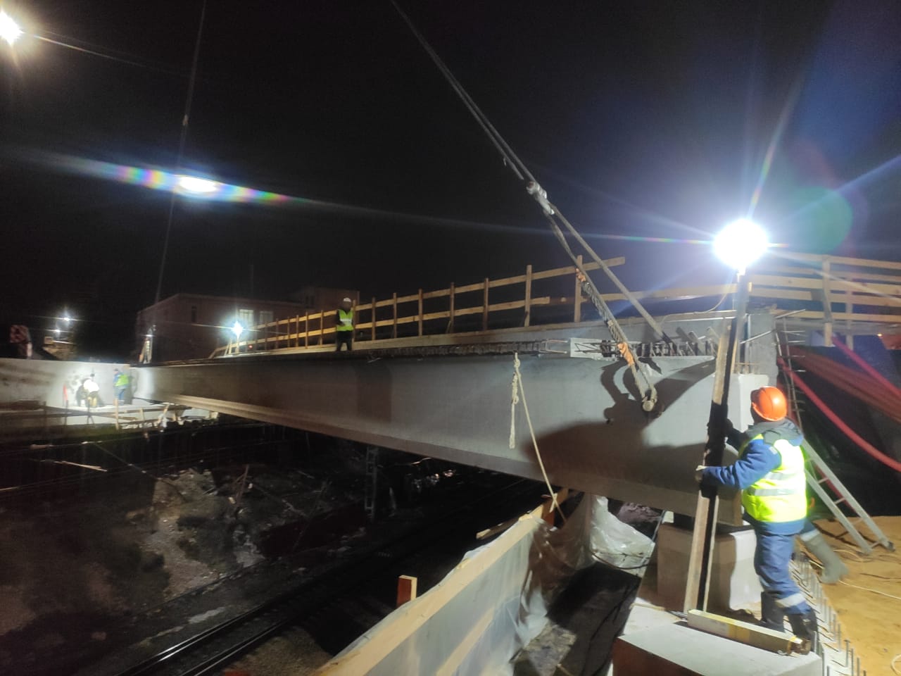 Монтаж первой балки весом около 60 тонн и длиной 33 метра начался сразу после прохождения поезда сообщением «Грозный – Москва». В 2.57 пресс-служба сообщила об окончании работ с первой балкой. В 3.40 был завершен монтаж еще одной балки.