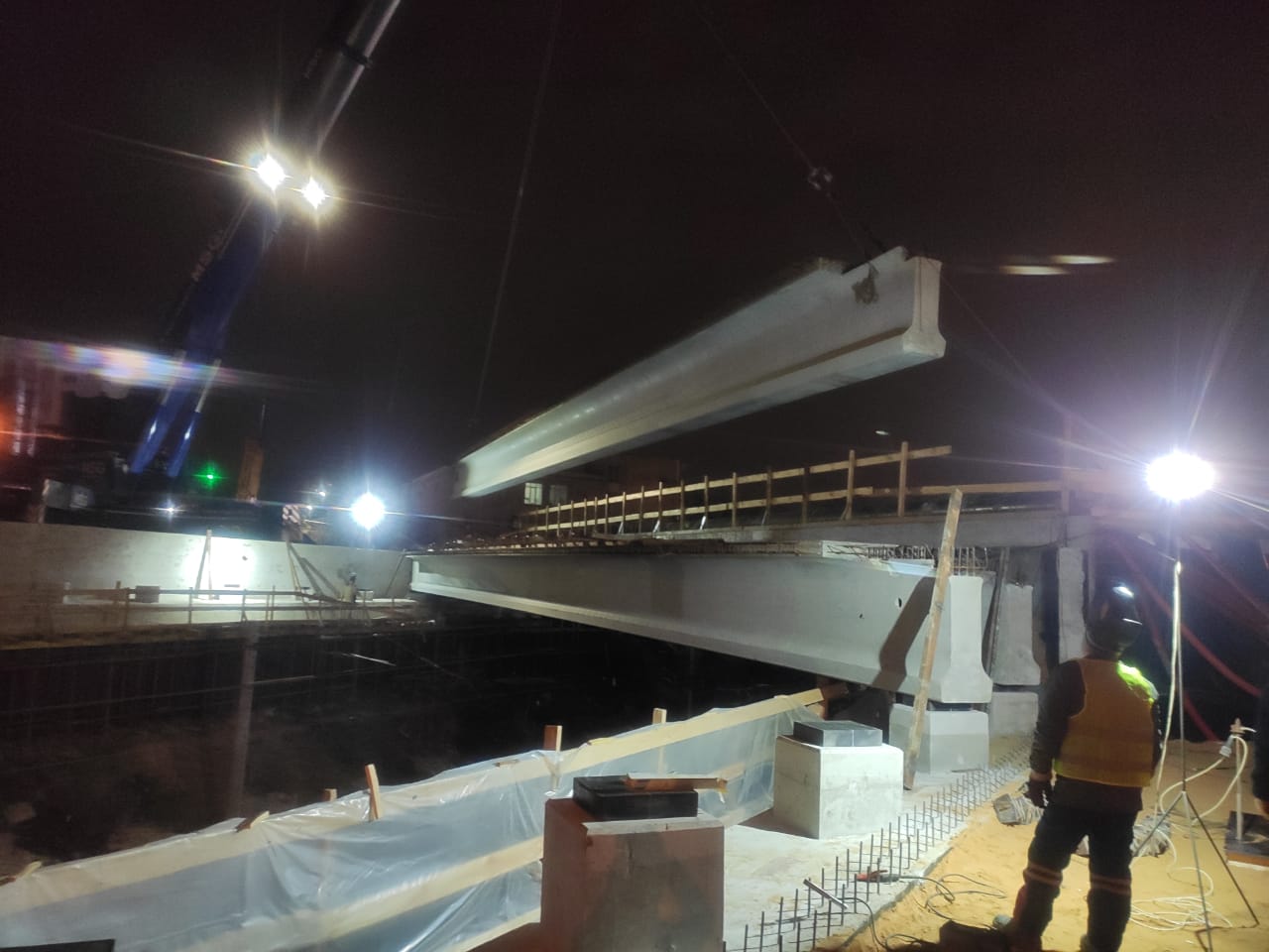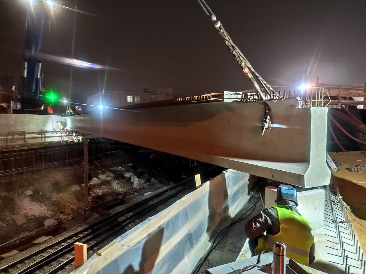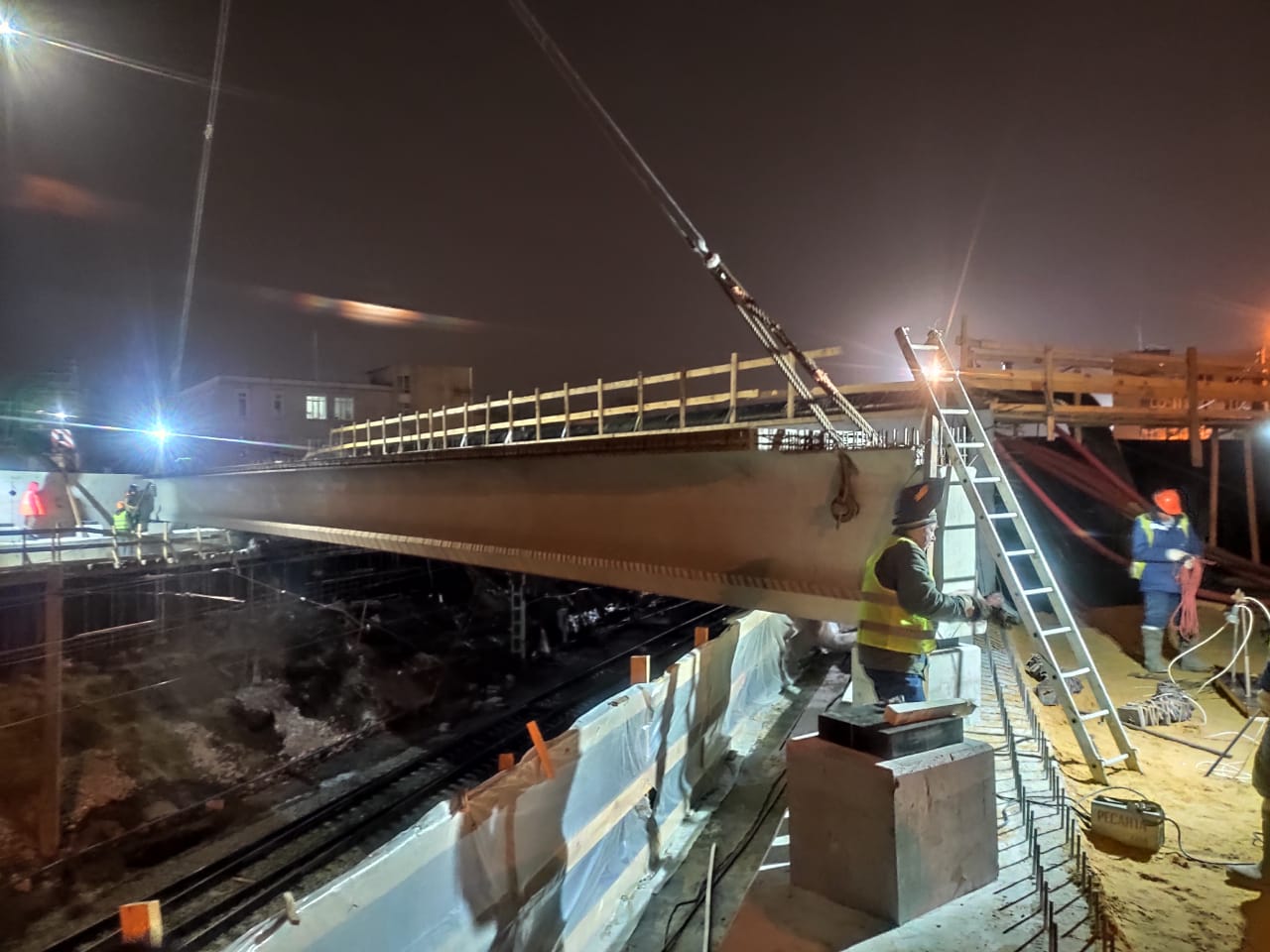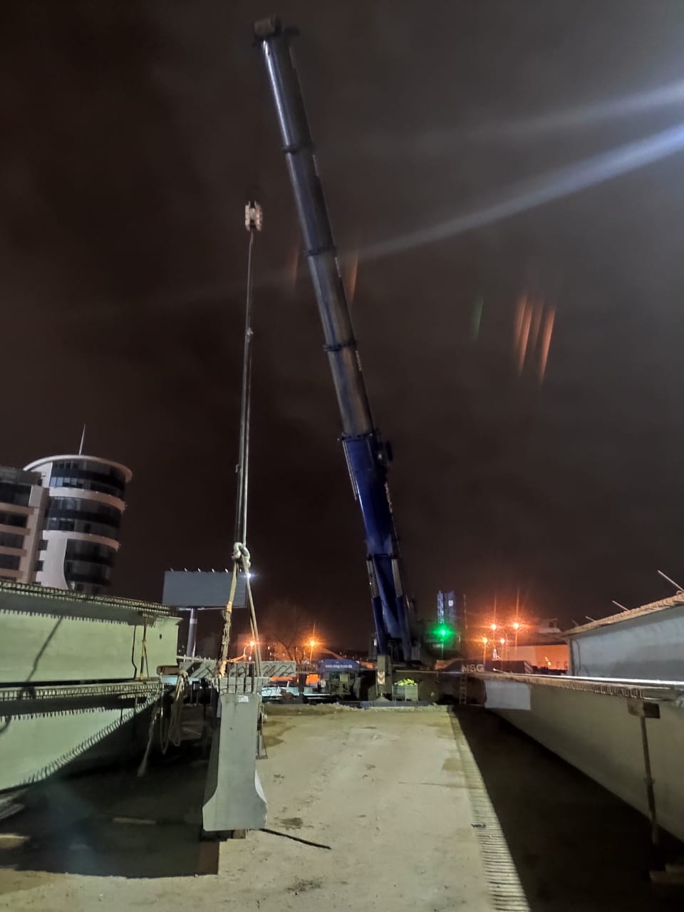 Руководство железной дороги выделило в эту ночь технологическое окно продолжительностью в 3 часа 15 минут – с 1.05 до 4.20. Подрядчик планировал за это время установить три балки. И это удалось, поскольку подготовительные работы провели заранее.