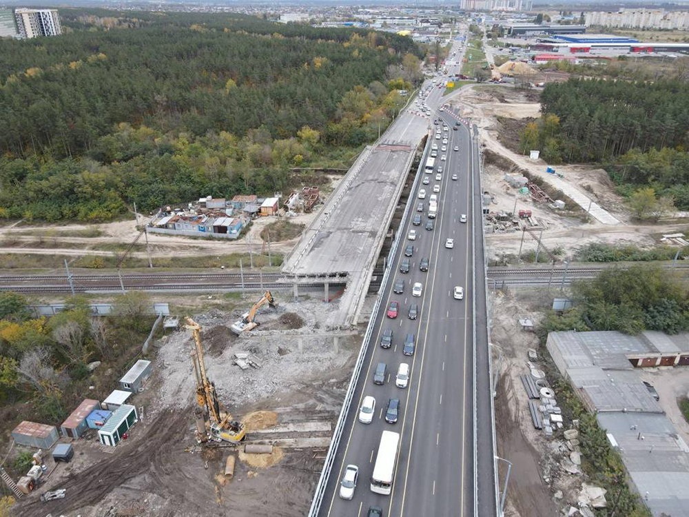 – Построен новый путепровод, по которому 19 сентября мы запустили автомобильное движение. Сейчас идёт демонтаж старого сооружения – уже разобрали 5 из 14 пролетов. Также ведётся устройство земполотна для съездов на пересечении улиц Минской и Остужева, водопропускных труб, идет работа с коммуникациями и т. д., – рассказал глава Воронежа.