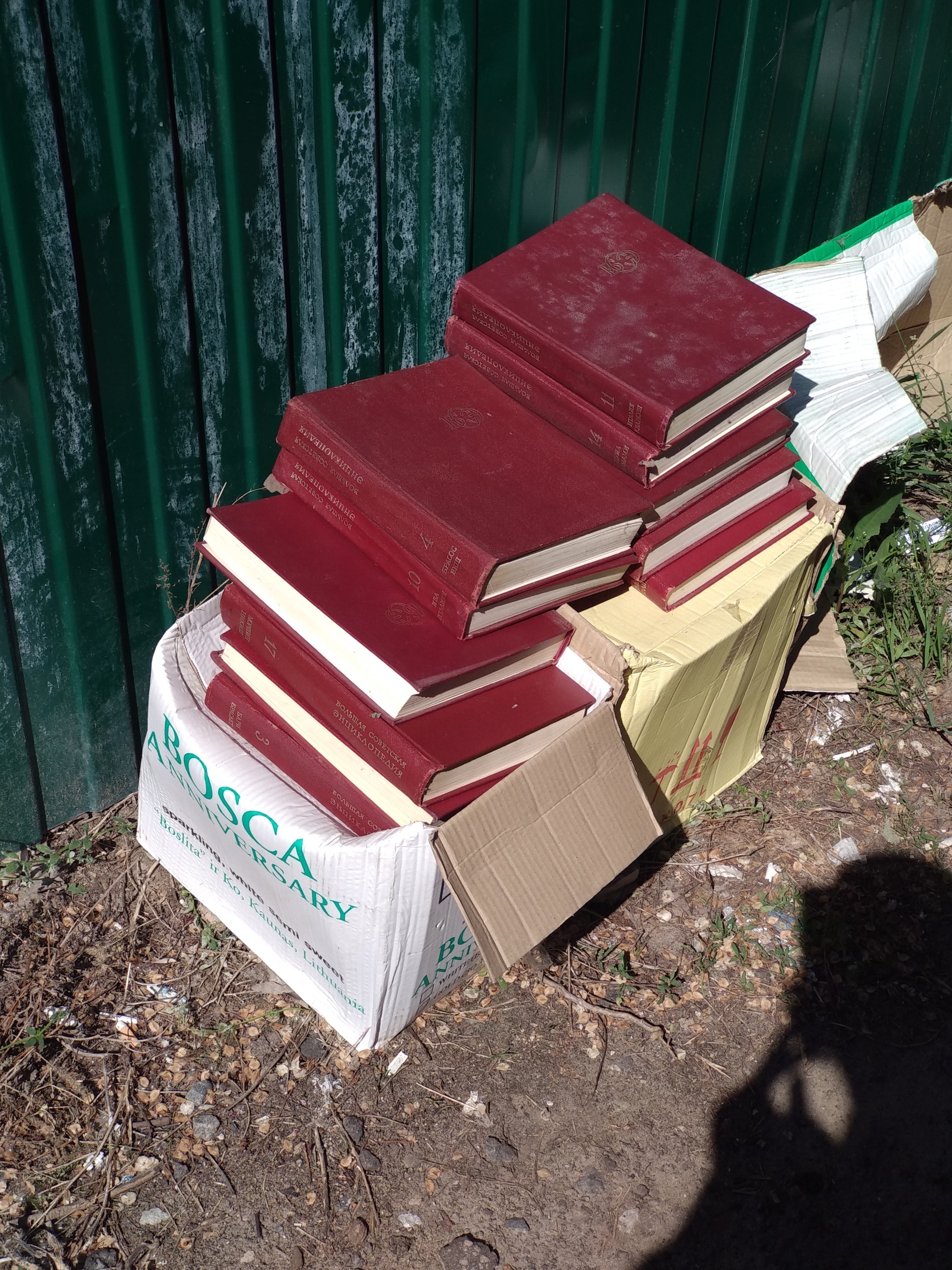 В популярном городском паблике «Типичный Воронеж» вчера вечером опубликовали фото коробок с книгами, стоящими у помойки. Автор «Макс Ширяев» сопроводил фото комментарием: «Большая Советская энциклопедия, больше никому не нужна. Кто-то выкинул ненужные книги на мусорку».