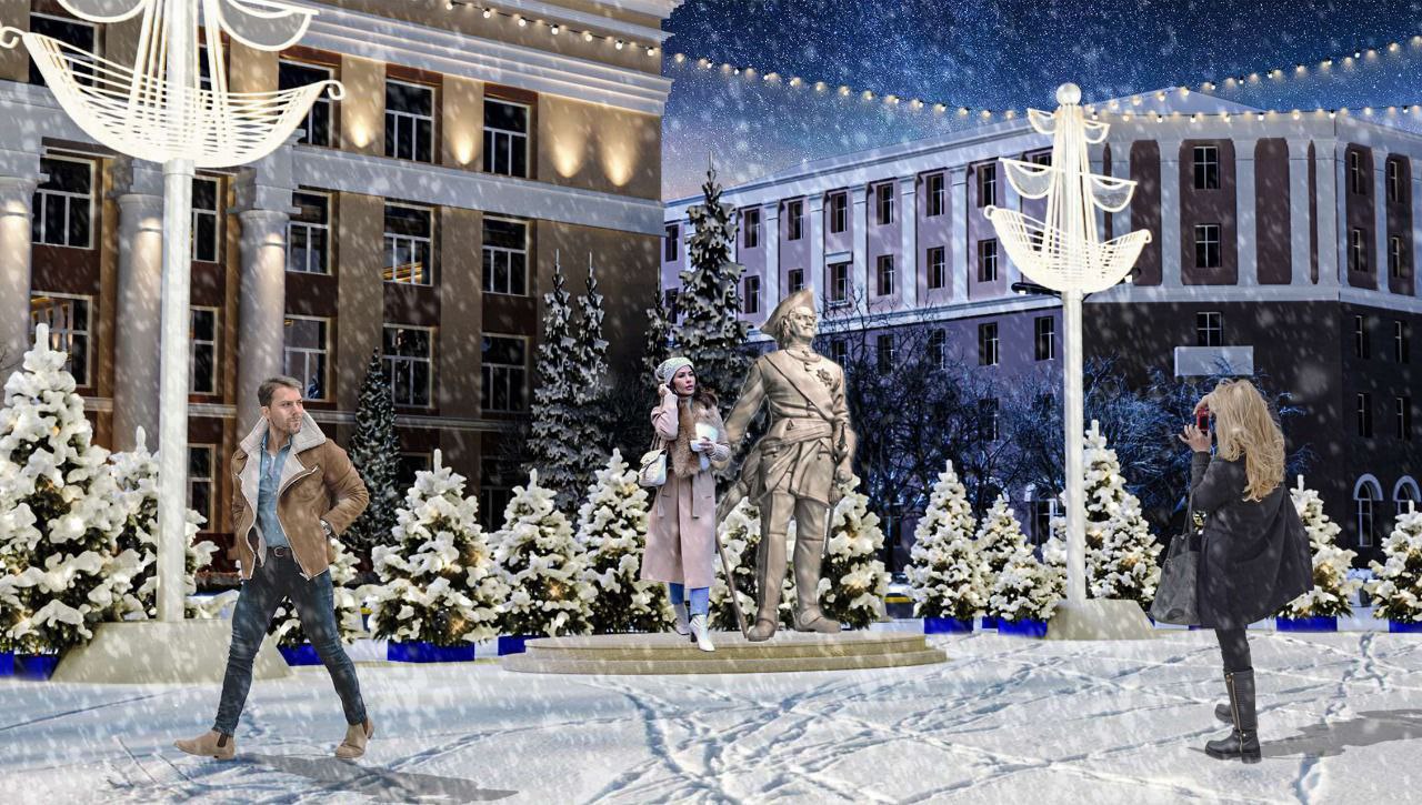 По периметру площади будут расставлены колонны со световыми консолями в виде кораблей. Вдоль улицы Плехановской планируется установить иллюминацию – ростральные колонны. Напротив Никитинской библиотеки разместится ярмарочная площадка, украшенная световой аркадой со стороны проезжей части, и фотозона с фигурой Петра I. Не заходя на площадь, можно будет сфотографироваться у «Императорской кареты».
