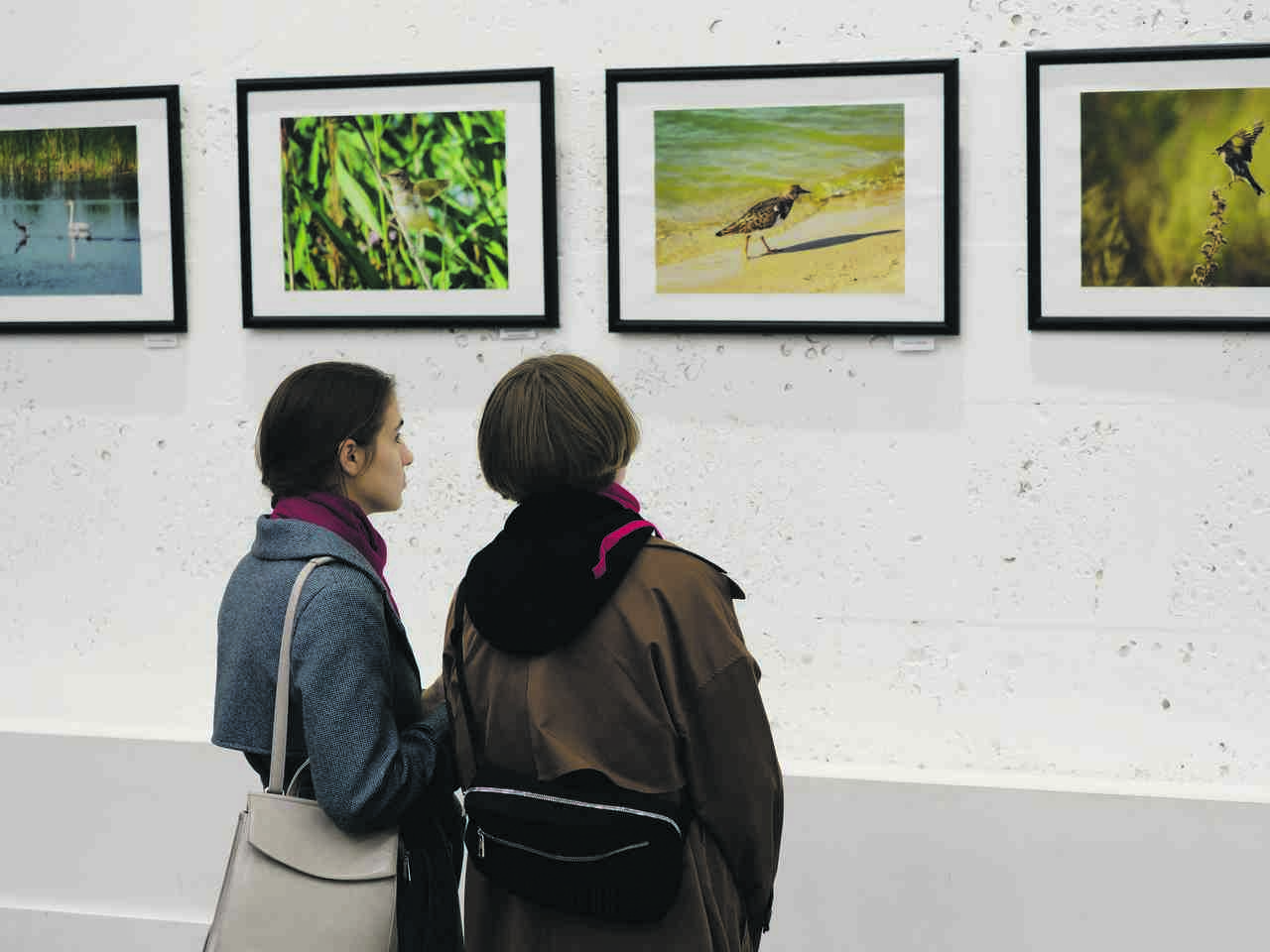 Зрители могут подробно рассмотреть таких пернатых, как камышницы, дятлы, лебеди, цапли, чомги, шилоклювки, камнешарки, дрозды-рябинники, горихвостки, кукушки, большие бакланы. Среди птиц-малышек, которых фотохудожнику удалось поймать в объектив, – малый зуек и дроздовидная камышовка. А чтобы посетители погрузились в атмосферу леса, в выставочном зале звучат птичьи голоса.