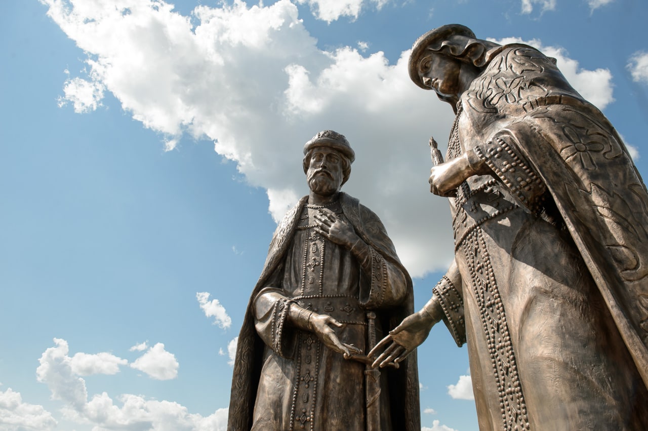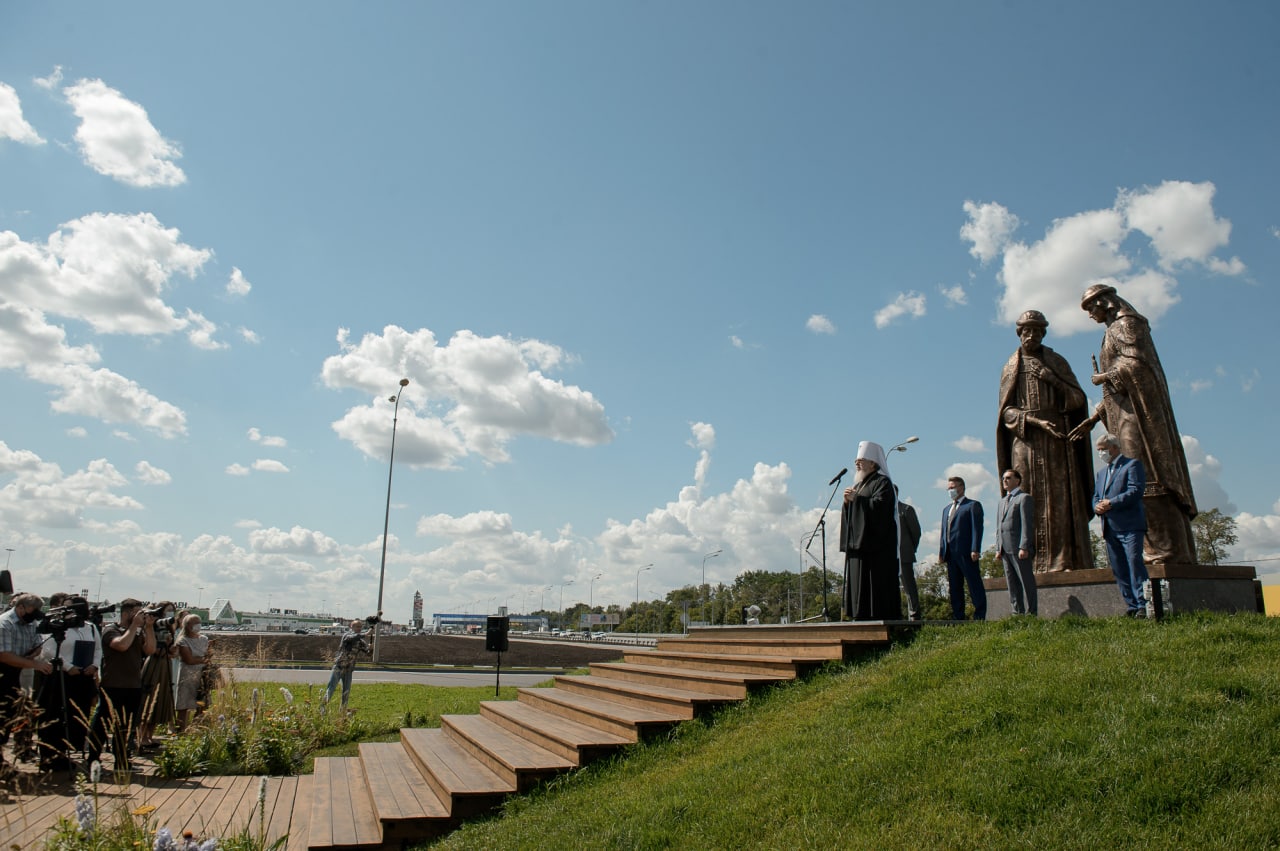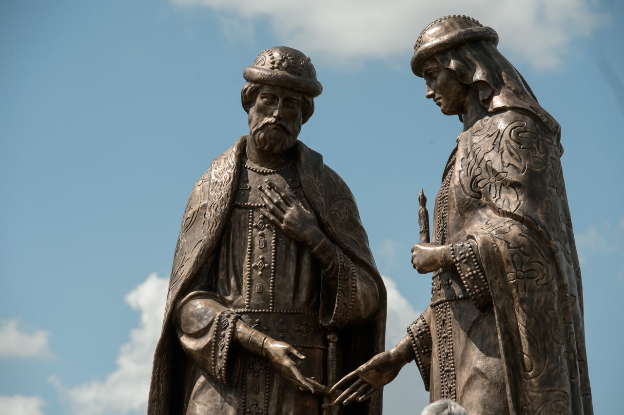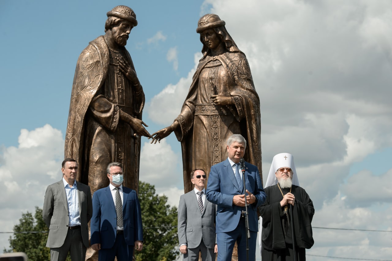 На открытии памятника святым покровителям брака и семьи князю Петру и княгине Февронии Муромским работы известного столичного скульптора Зураба Церетели присутствовали зампредседателя Госдумы Алексей Гордеев, губернатор Александр Гусев и мэр Воронежа Вадим Кстенин.
