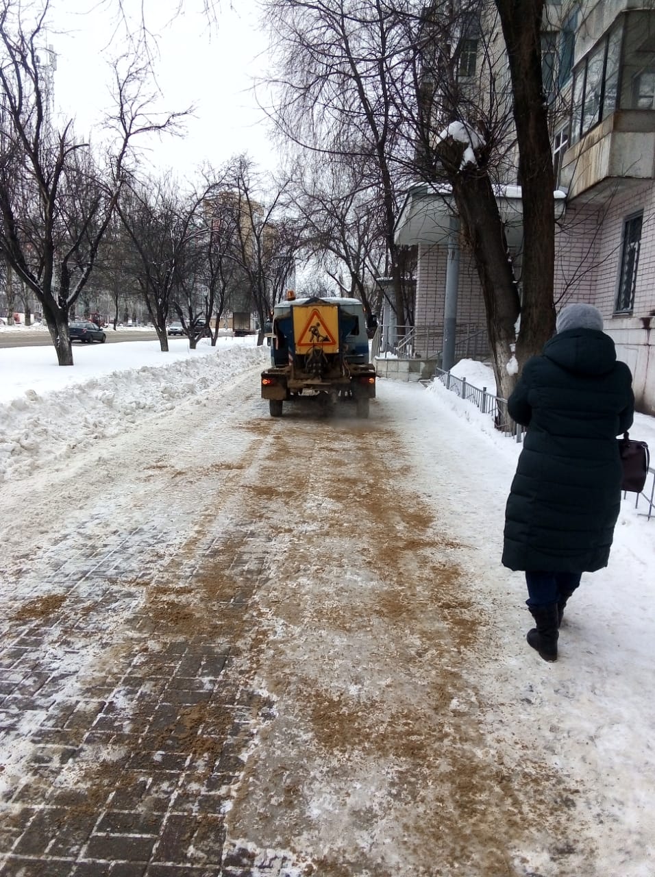 В городе перед началом снегопада посыпали тротуары и дороги. Спустя некоторое время посыпка будет дополнена циклами подметания – для уменьшения вероятности образования наката и льда.