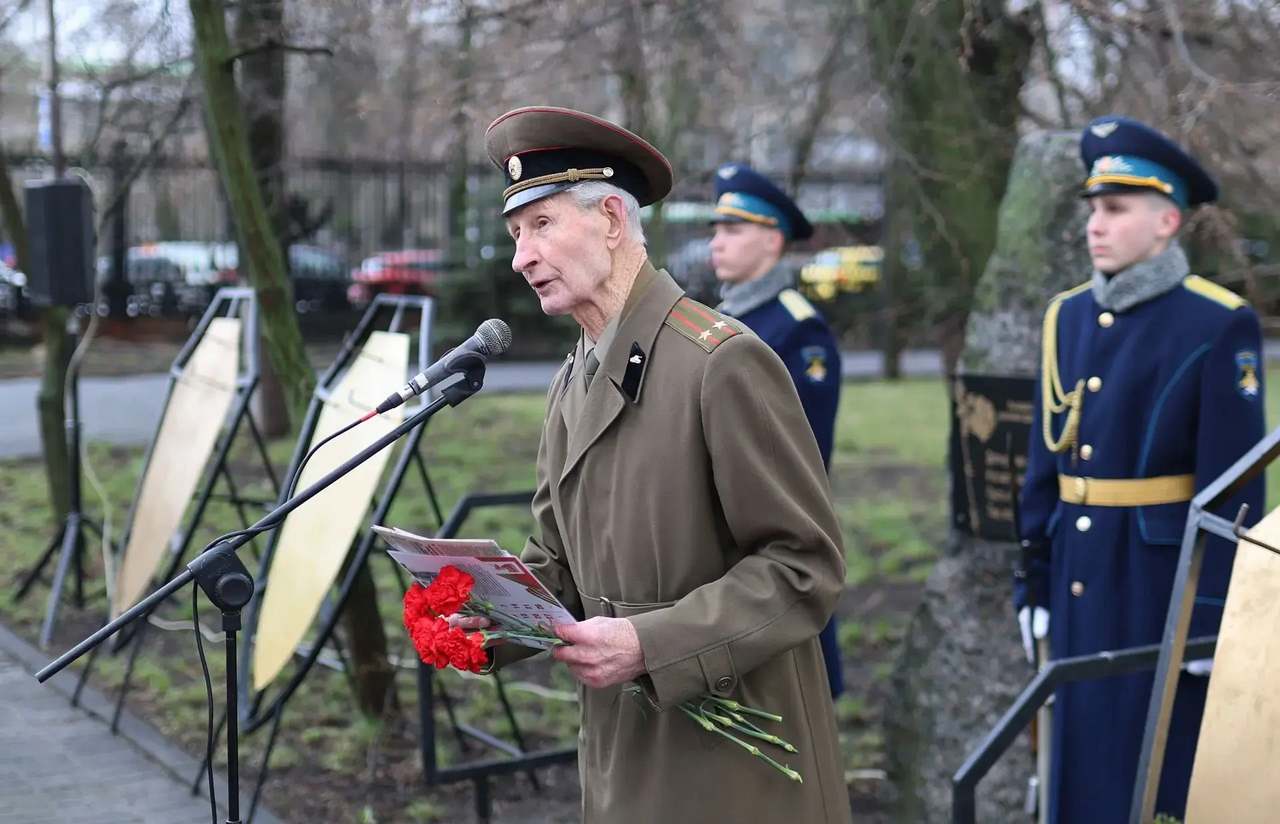 Василий Воронов, ныне ветеран Вооружённых сил и обладатель почётного знака «Воронеж — город воинской славы», поделился воспоминаниями и прочёл стихотворение, посвящённое военным годам.
