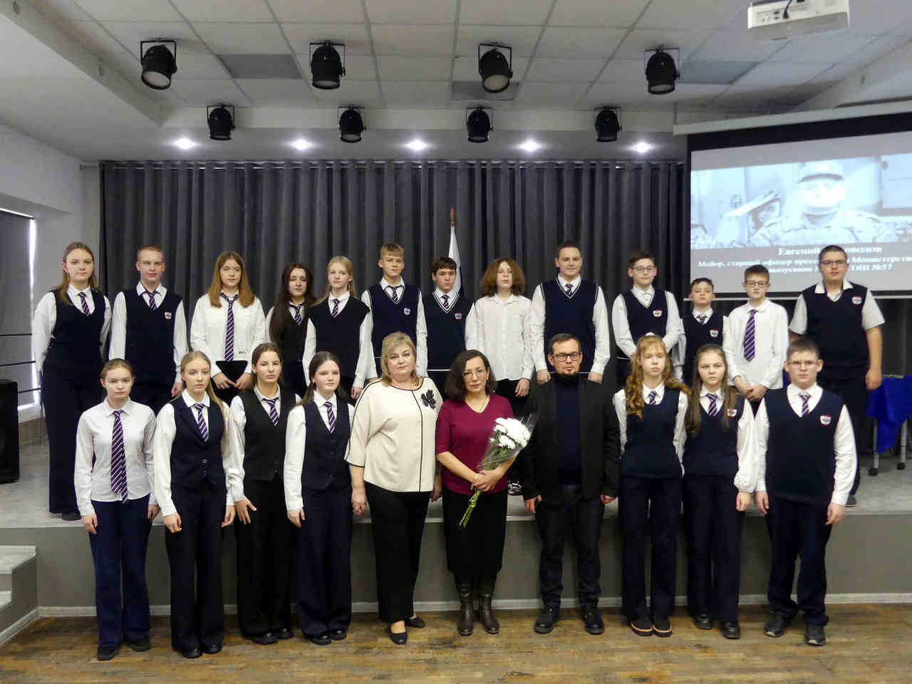 – Героями не рождаются, ими становятся постепенно, за партой. Те ребята, которые сейчас защищают нас на СВО, были абсолютно такими же мальчишками: они любили жизнь, шутки, друзей. Но когда страна сказала: «Надо» – они ответили: «Есть». И выполнили свой гражданский и сыновний долг по отношению к Родине. До последнего кадра, – выступила перед семиклассниками мама Жени.