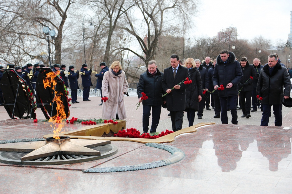Память погибших воинов почтили представители областной и городской власти, региональных силовых структур и правоохранительных органов, общественники, ветераны, молодежь и духовенство.