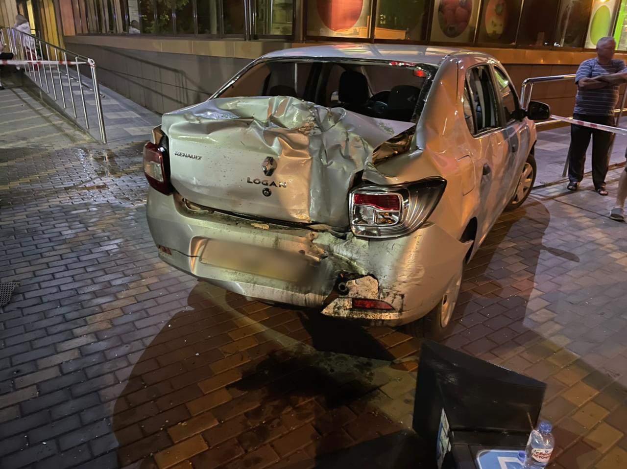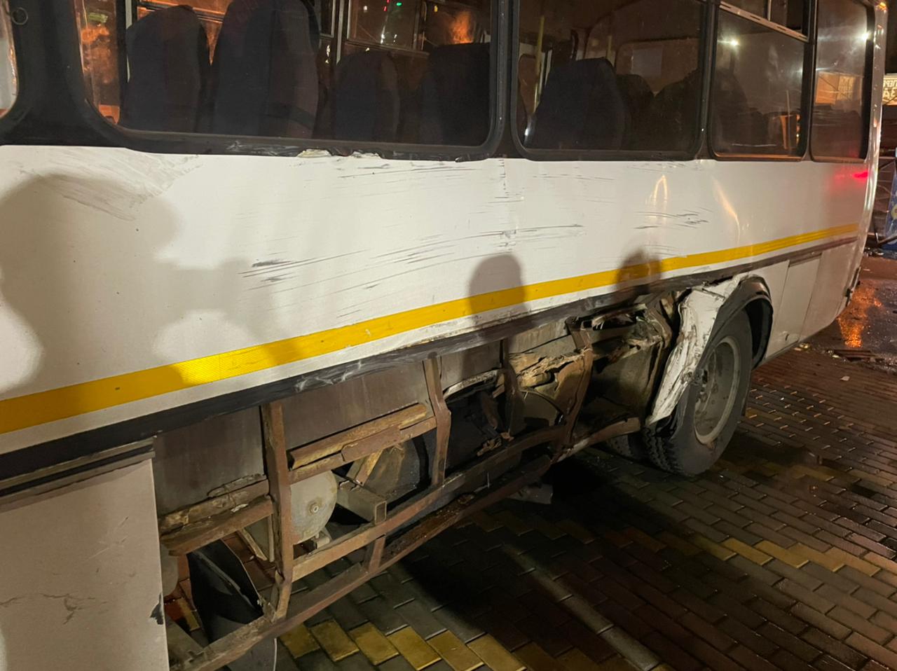 От удара маршрутку вынесло тротуар, здесь автобус врезался в опору с дорожным знаком «Остановка запрещена», затем в терминал приема платежей, торговый павильон «Робин Сдобин» с холодильником и припаркованный автомобиль «Рено-Логан», в котором, к счастью, никого не было.